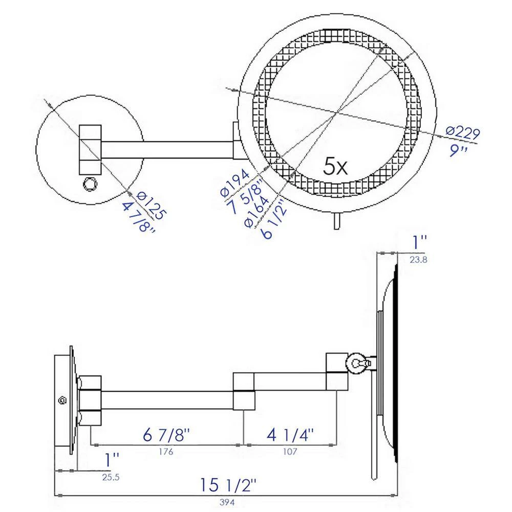 - Mirror magnifies up to 5X