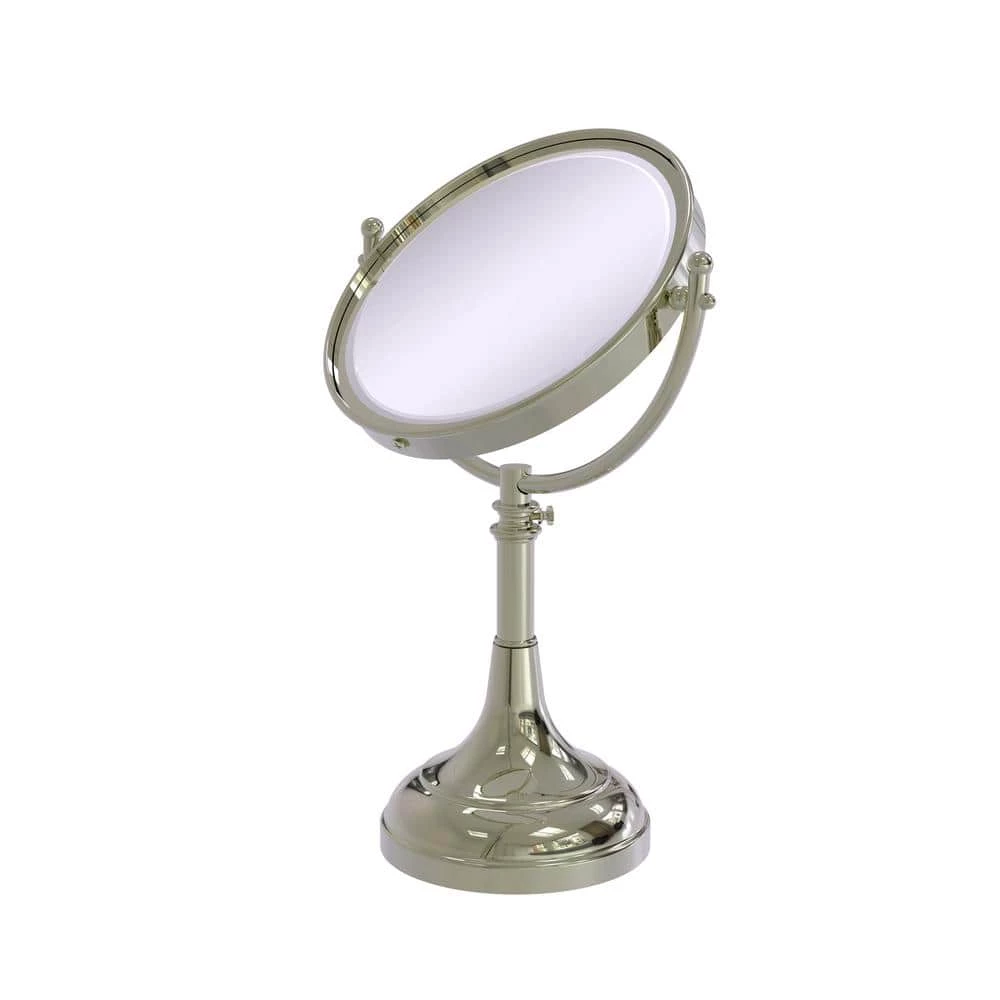 Add this stylish makeup mirror to your bathroom decor for an elegant touch. Makeup and shaving mirror pivots and tilts to allow for complete versatility in viewing angles. Mirror is height adjustable from 17 in. to 23 in. Mirror is made from the finest solid brass materials. 8 in. double faced mirror features clear magnification on one side.