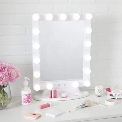 GloTech 15.75 in. x 22 in. Lighted Tabletop Makeup Mirror in White