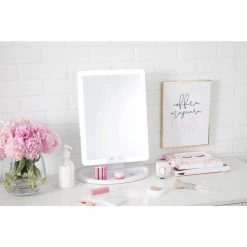 GloTech 11.8 in. x 17.7 in. Lighted Tabletop Makeup Mirror in White