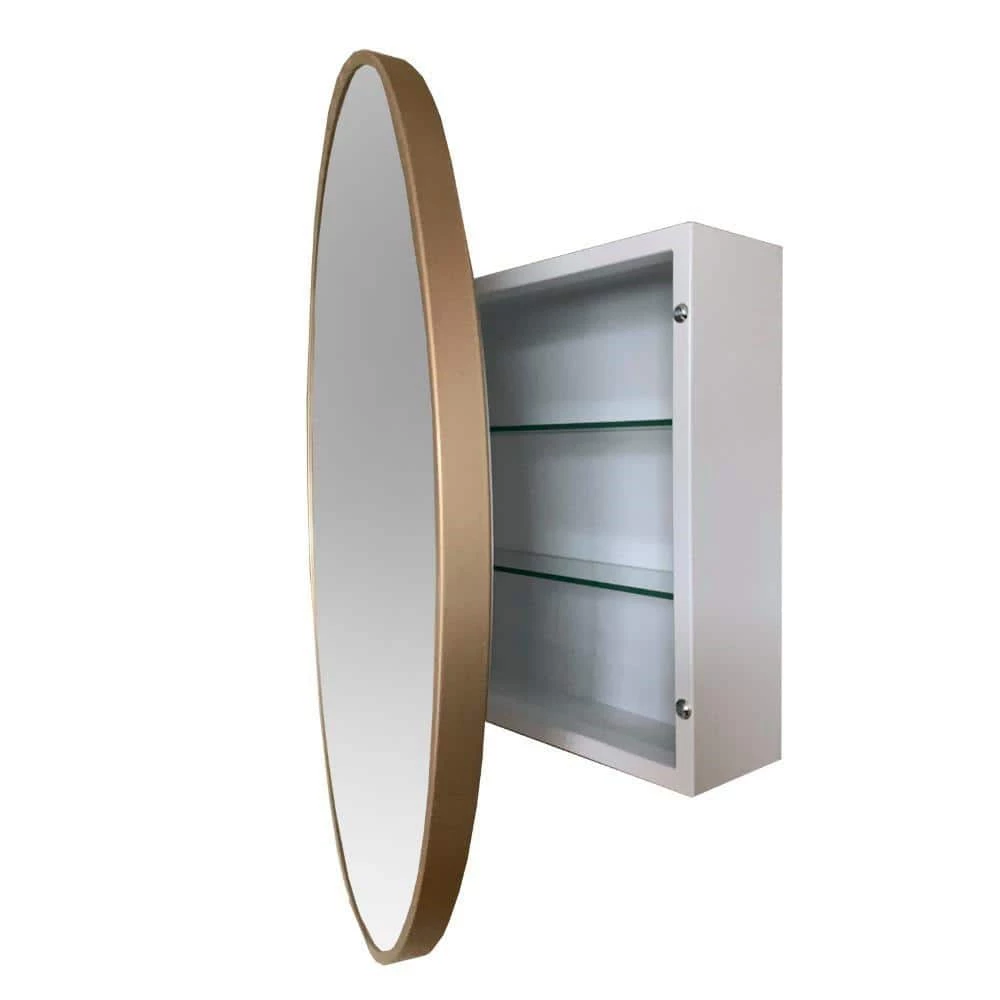 This circle steel framed mirrored medicine cabinet provides a clean, simple look to any bathroom. The high-quality glass prevents rusting against bathroom humidity. All mounting hardware is included. No Assembly Required.