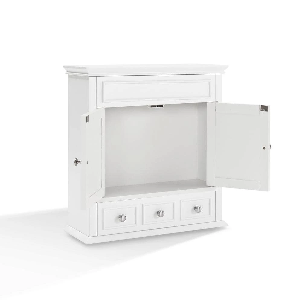 The medicine cabinet. That staple of bathrooms since well, since the bathroom. It’s where all the little things go to hide, usually never to be seen again. The problem medicine cabinets are usually just too small. The Lydia wall cabinet from Crosley is much more than your standard medicine cabinet it’s usable storage. Louvered doors open to an extra deep main cabinet, which is large enough for industrial sized bottles of cologne or nail polish remover. The handy bottom drawer is perfect for those little odds and ends think nail clippers and extra contacts that always seem to get lost on the shelf of the typical medicine cabinet.