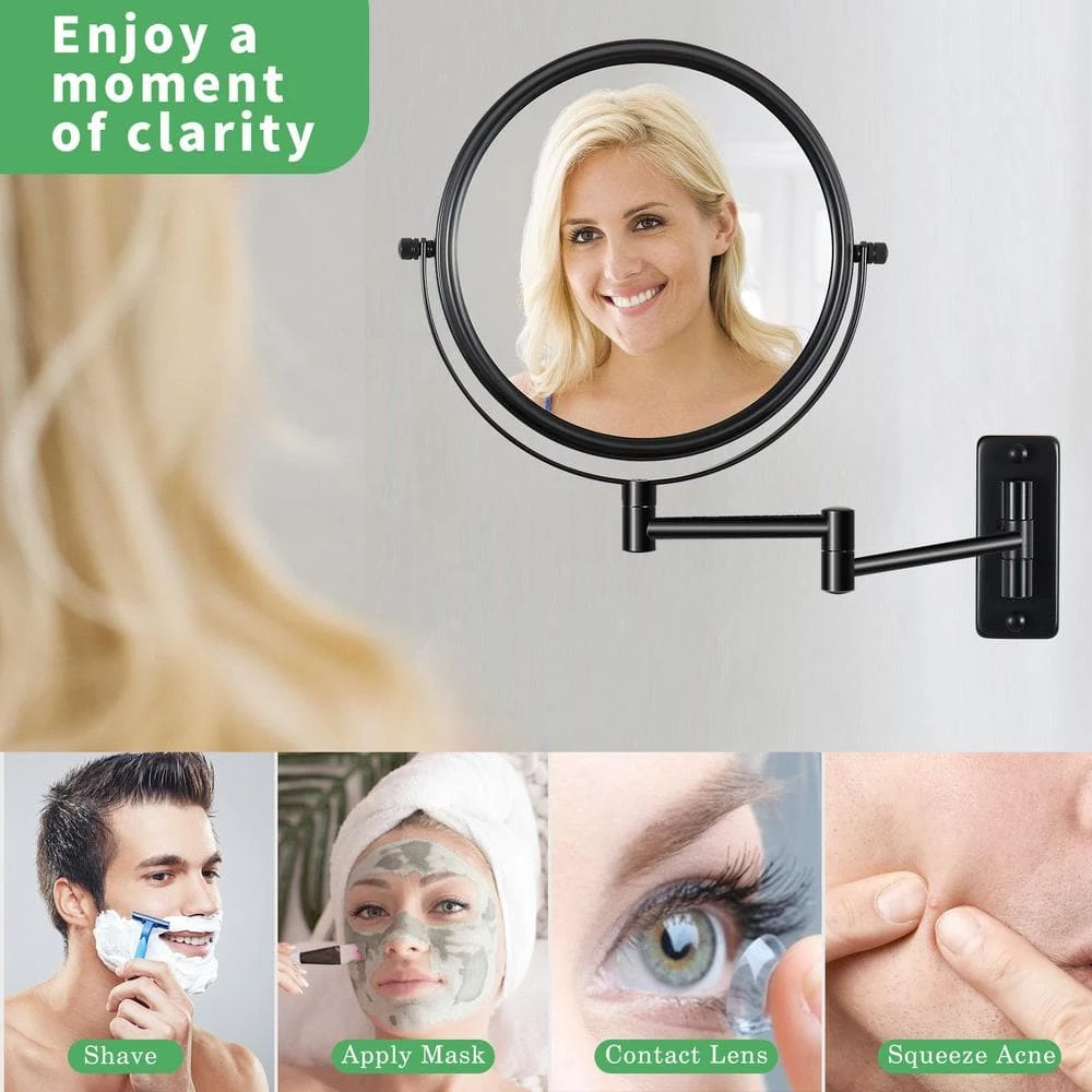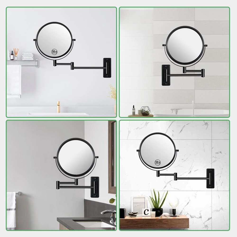 - Black wall mounted makeup mirror:1X and 10X high-definition mirror without distortion, according to the principle of magnification, in order to avoid eye halos, it is recommended to use the best results at 3 inches.