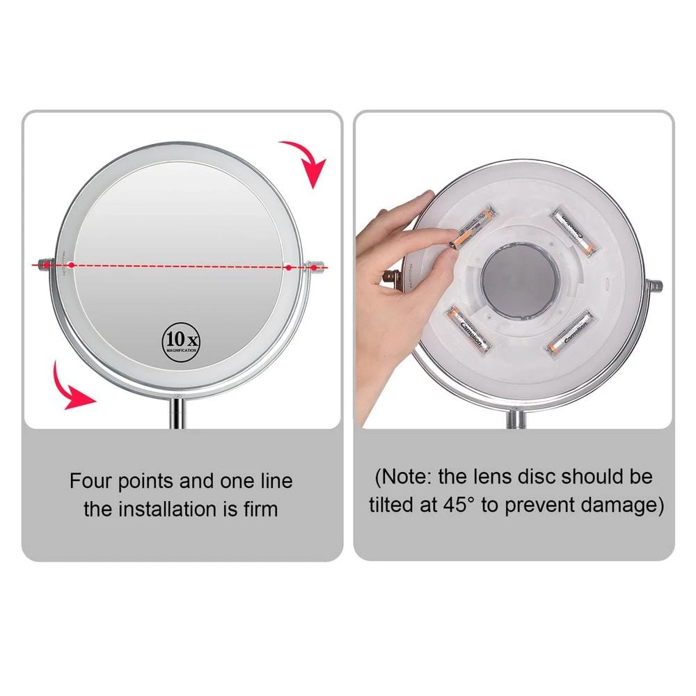 - Double face makeup mirror,10x or 1x magnificationOne side will be a standard 1x mirror, the other side is magnified