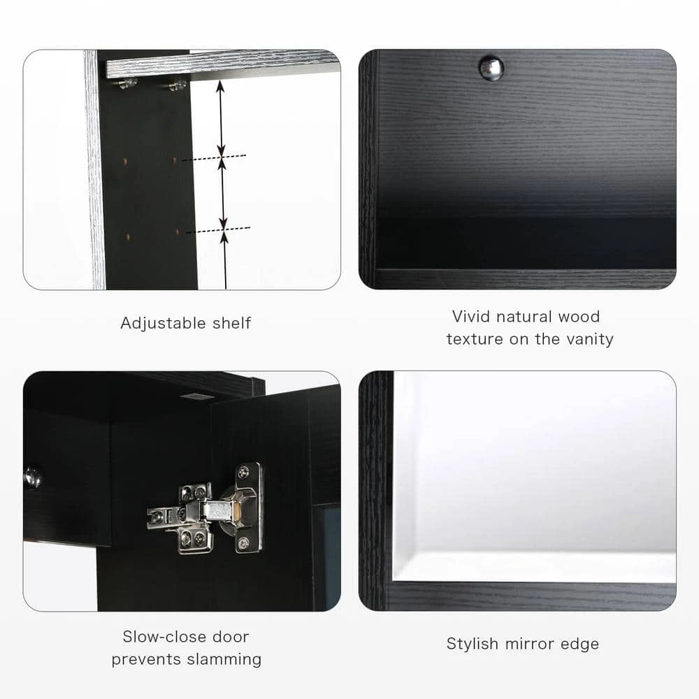- Modern design, perfect match with vanity 3 height adjustment for flexible storage space MDF material and high quality mirror