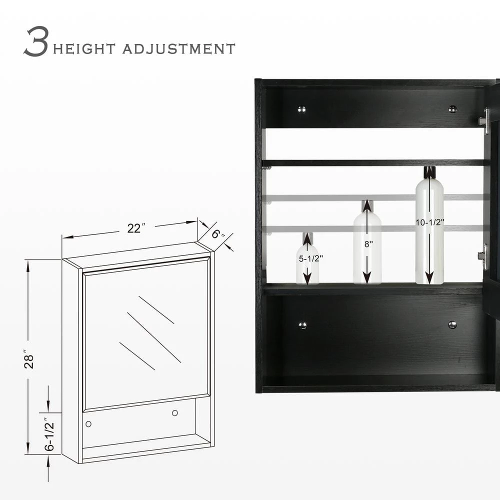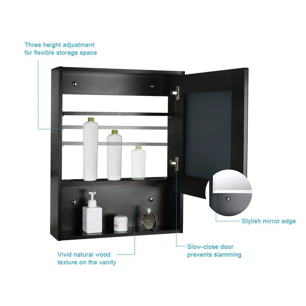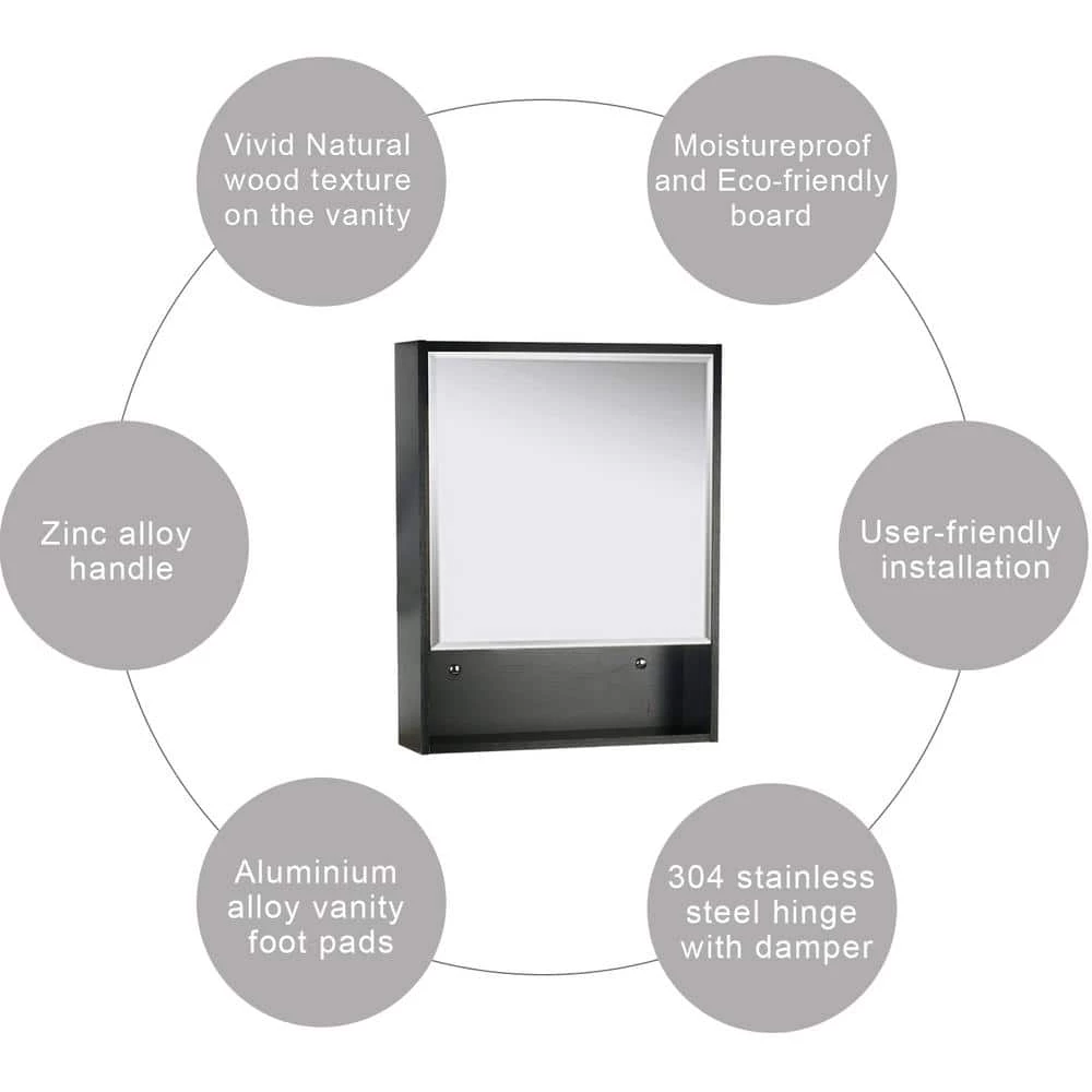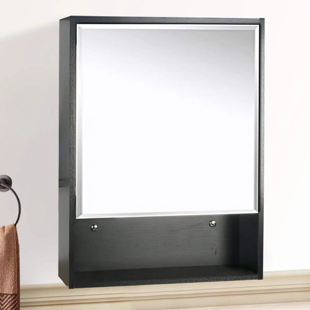 This framed medicine cabinets With a sleek mirrored surface outside help you put your best face forward. The mirrored front door has a beveled edge for a sleek look that complements a variety of bathroom styles. A space without a door is under the frame for convenient storage of commonly used items, keep your bathroom clutter-free by placing frequently used items conveniently at your fingertips-without needing to bend and search through vanity drawers.