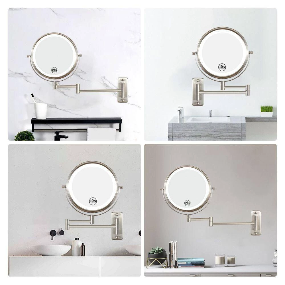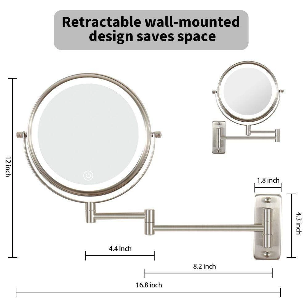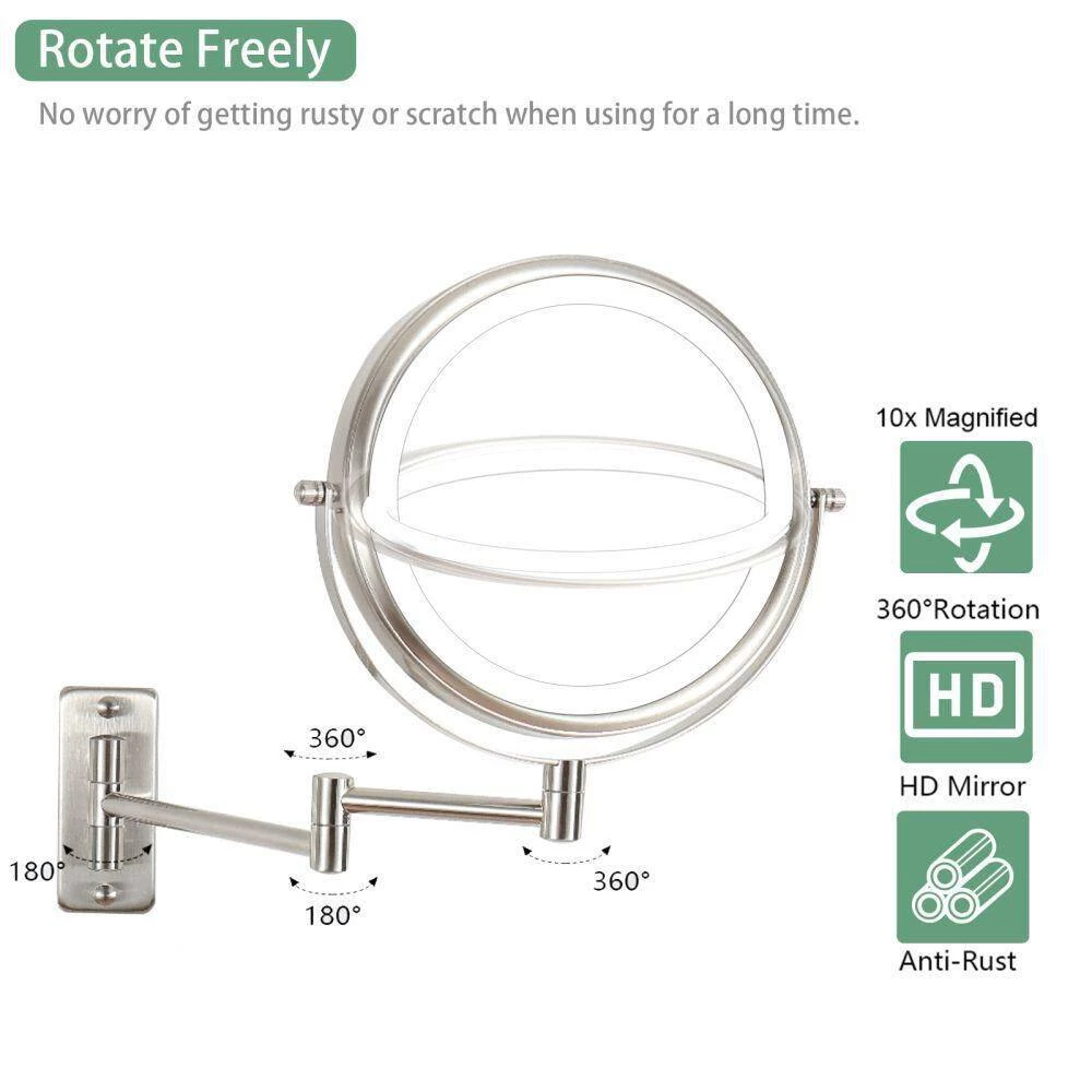- 【360° Swivel Extended Mirror】 Multiple joints of the wall mounted makeup mirror can be rotated 360 degrees freely, easy to adjust the best viewing angle and position; the extendable arm can rotate 180° only, convinent for storage.