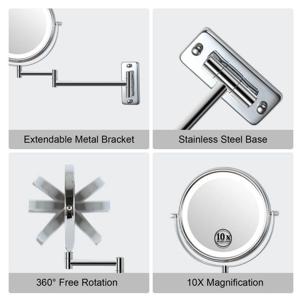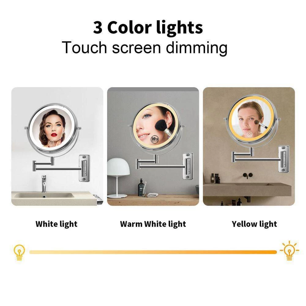 - 【360° Swivel Extended Mirror】 Multiple joints of the wall mounted makeup mirror can be rotated 360 degrees freely, easy to adjust the best viewing angle and position; the extendable arm can rotate 180° only, convinent for storage.
