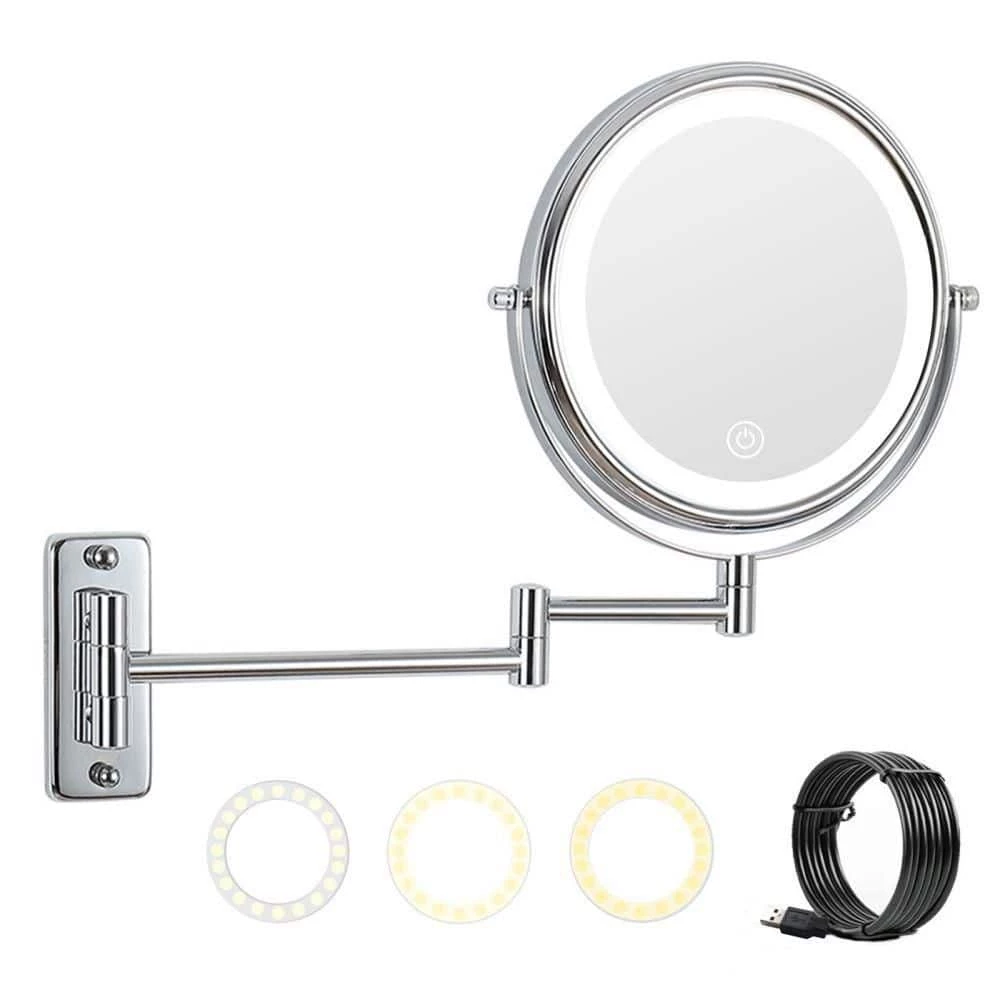 - 【Rechargeable & USB Charging】 Coming with a USB cable, and this upgraded wall mounted lighted makeup mirror compatible with 3AAA battery (not included), we recommend a rechargable battery, cost saving and eco-friendly.