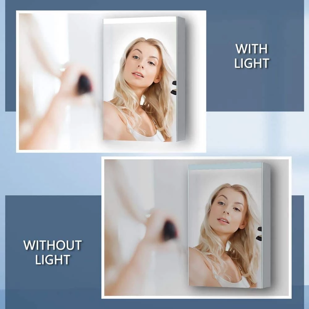 - High product quality and high CRI: our aluminum metal LED medicine cabinet durable, prime quality hinges and fittings work smoothly without rust or distortion, we also use the most advanced coating technology for our mirror, making them last 3 times longer than the average