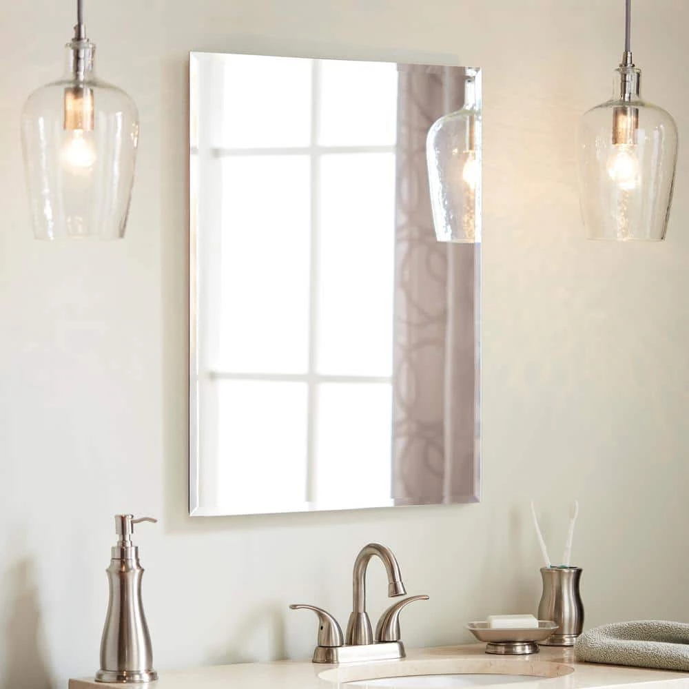 - Beveled front mirror, 2-inside mirrors; back of door and interior back panel