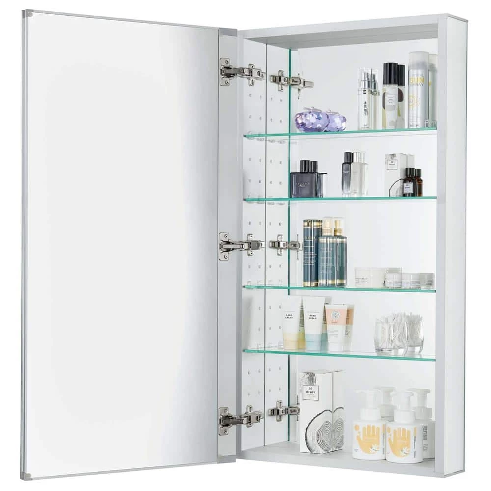 - Heavy duty construction- constructed from high quality anodized aluminum with a durable nonrusting and chip free finish, adjustable 1/4 in. tempered glass shelves offer additional bathroom storage, they will easily accommodate your essential toiletries and bath items such as soaps, shampoos, toothpaste, in addition to your makeup