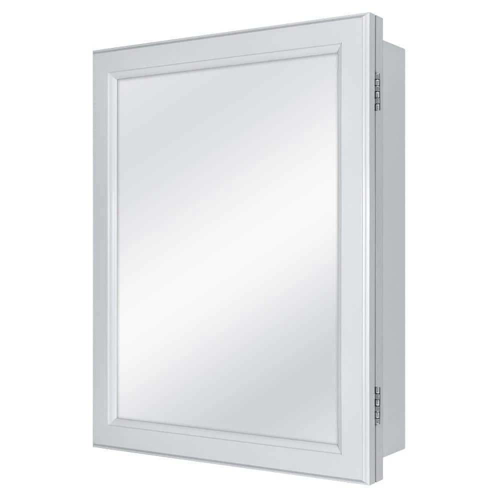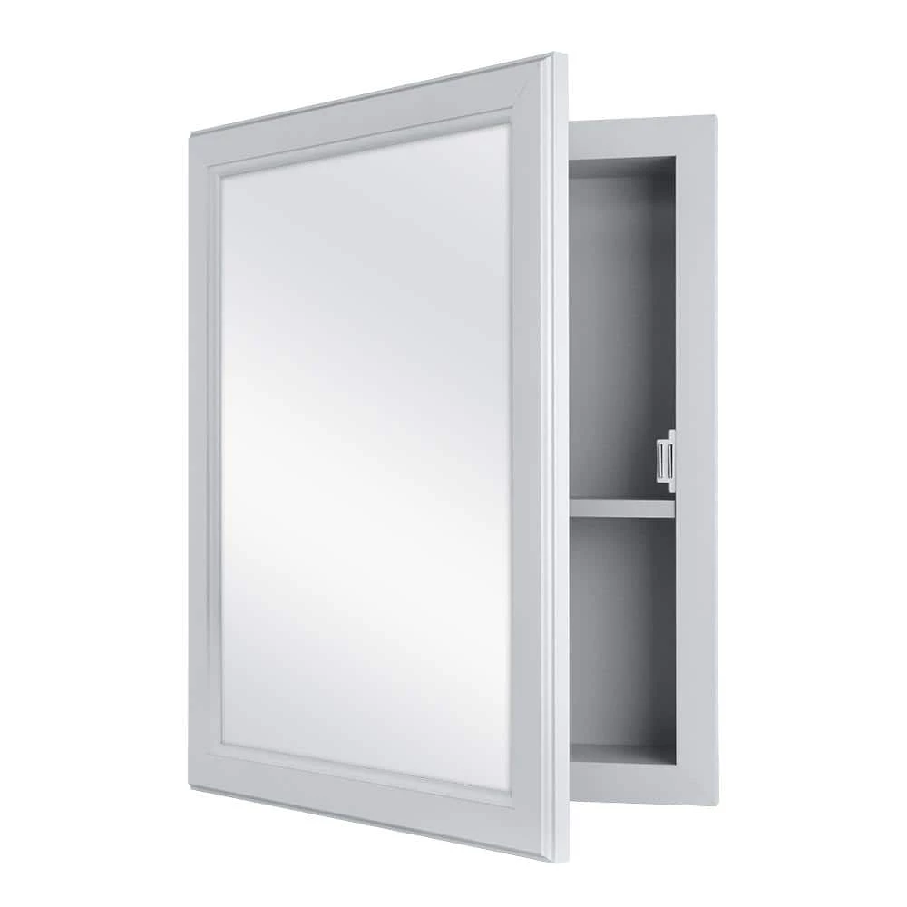 Add a classic look to your bathroom or powder room with this Gray finished 15.12 in. W x 19-1/4 in. H x 4.58 in. D Glacier Bay Framed Recessed or Surface-Mount Bathroom Medicine Cabinet. The adjustable shelf offers ample storage flexibility. Double shelf pegs enable you to customize your space quick and easy. The versatility of this cabinet also allows the door to be reversible to open left or right based on your preference. Wood Composite construction provides exceptional durability and strength. Fully assembled for your convenience.