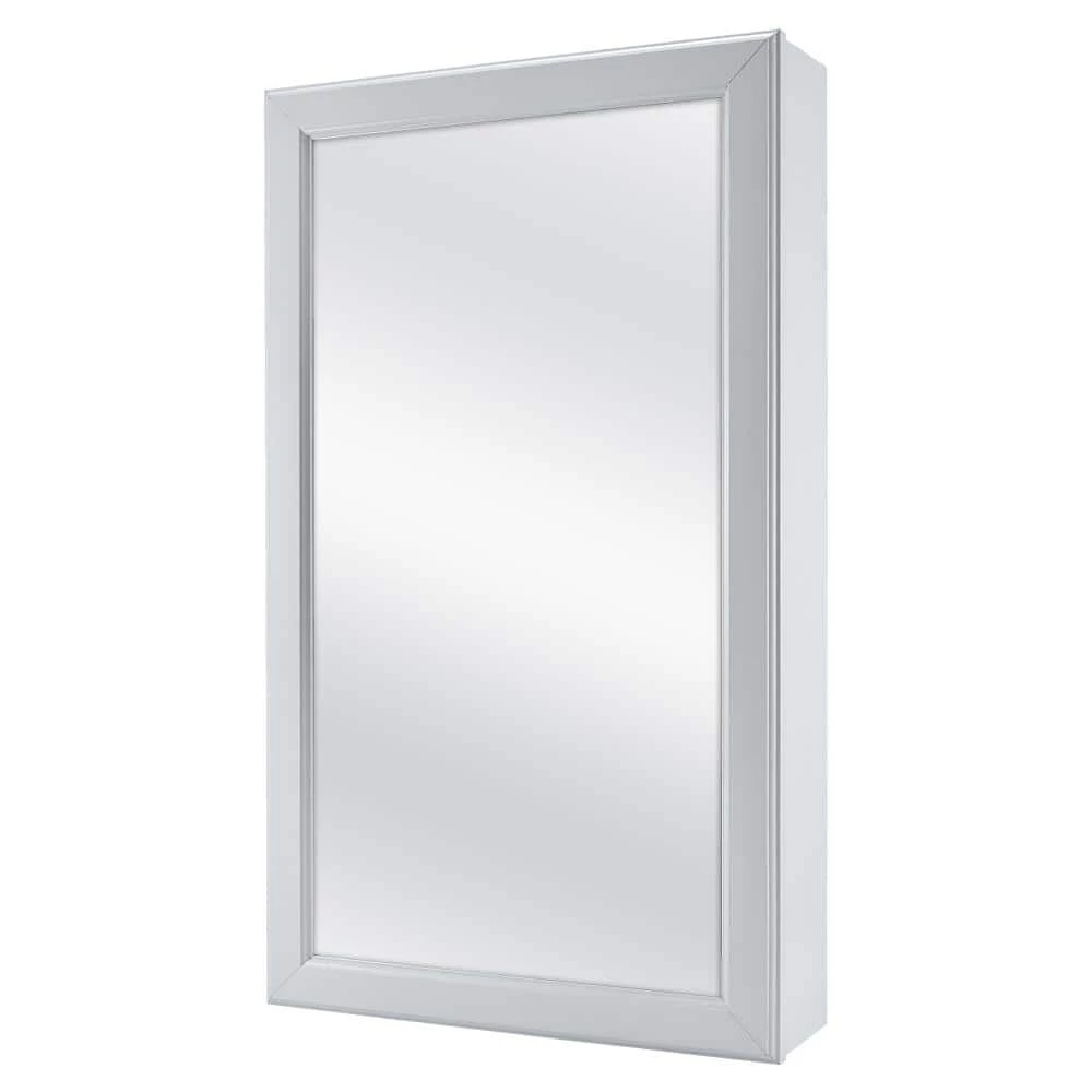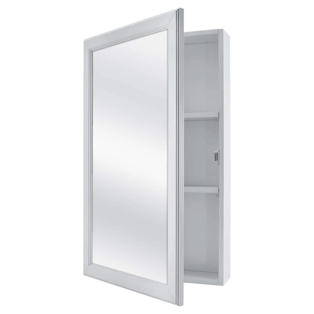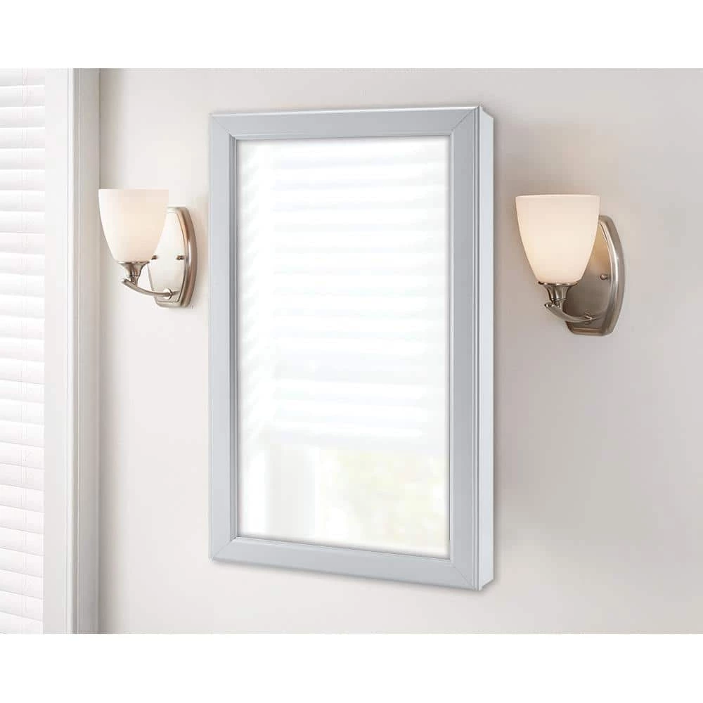 The Glacier Bay 15.25 in. W x 26 in. H x 4.6 in. D Gray Framed Surface-Mount Bathroom Medicine Cabinet is a great addition to your bathroom or powder room. The 2 adjustable shelves offers ample storage flexibility. Double shelf pegs enable you to customize your space quick and easy. The versatility of this cabinet also allows the door to be reversible to open left or right based on your preference. Wood Composite construction provides exceptional durability and strength. Fully assembled for your convenience.