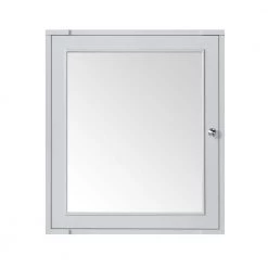Stately elegance informs every detail of the Aberdeen 27 in. wide by 24 in. high bathroom medicine cabinet by Home Decorators Collection. Its carefully constructed dove gray lacquered frame features a large mirrored single door that opens to a generously sized storage space to keep all your toiletries neat and organized. Coordinates beautifully with the Aberdeen bathroom vanity collection, available in a range of color finishes and sizes from space saving compact designs to a luxurious 72 in. wide double vanity.