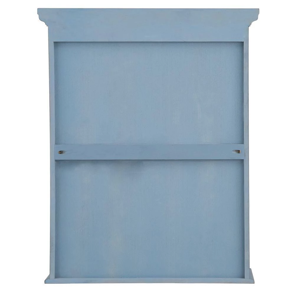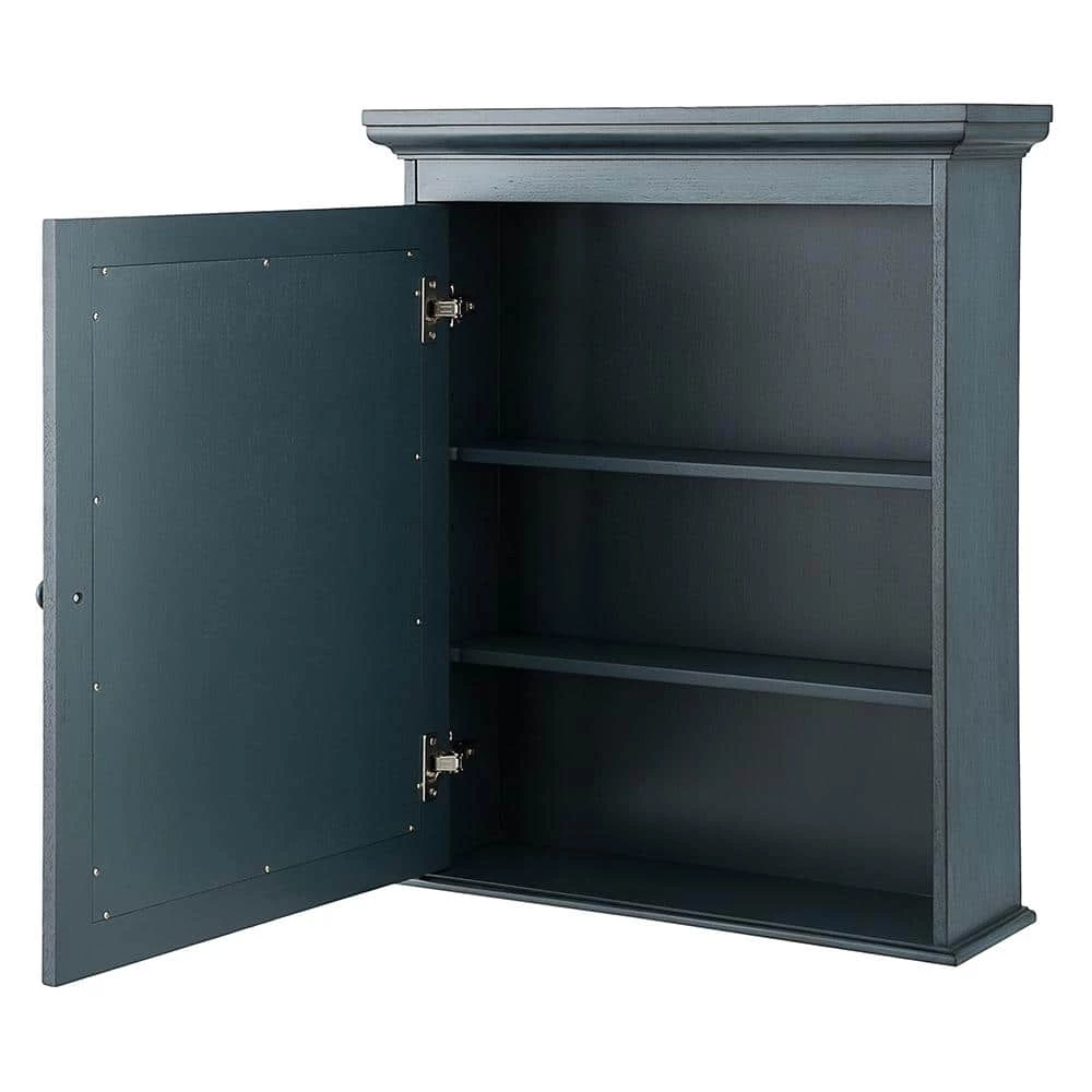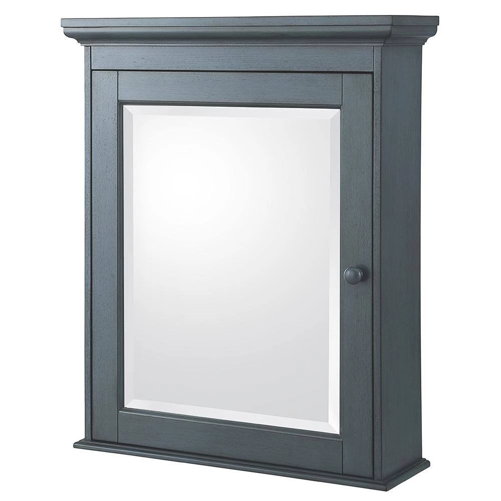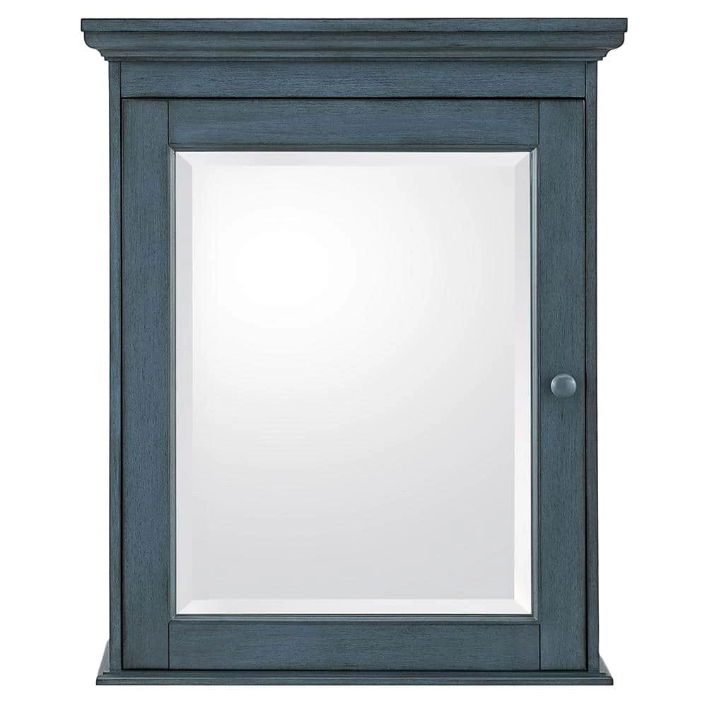 The Foremost Cottage 23-5/8 in. Surface-Mount Medicine Cabinet in Harbor Blue, with its beveled mirror and decorative wood frame, offers a classic look that can add elegance to your bathroom and enhance its overall appeal. Its harbor blue finish can accompany many different decorating schemes. 2-adjustable shelves provide ample space for a variety of container shapes and sizes, giving you versatile storage options. The cabinet can be easily installed with its Secure-Mount system.