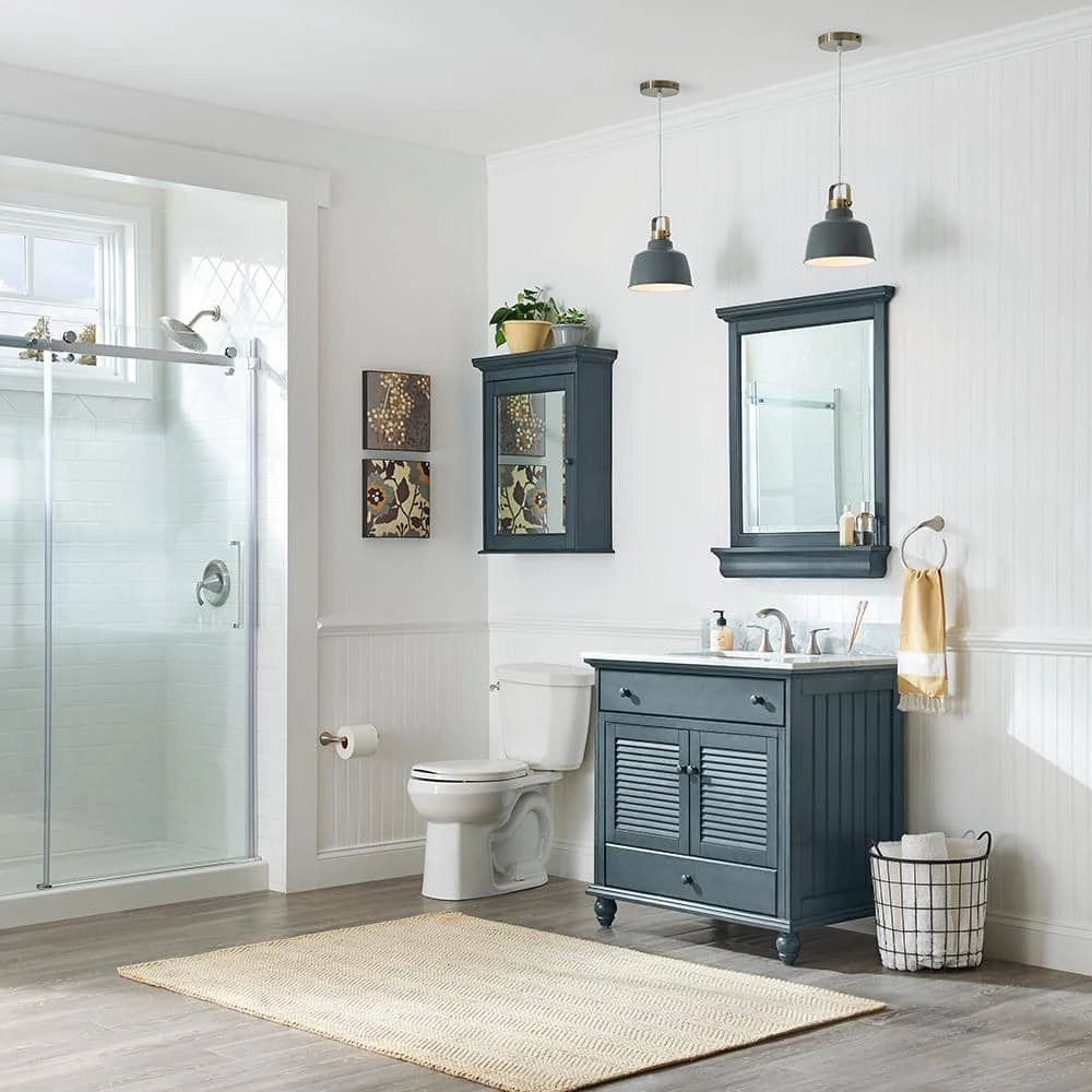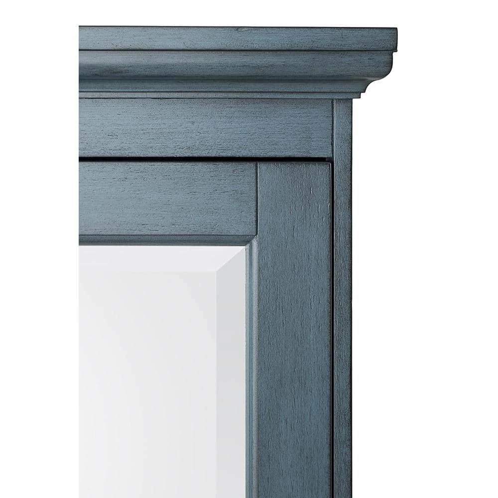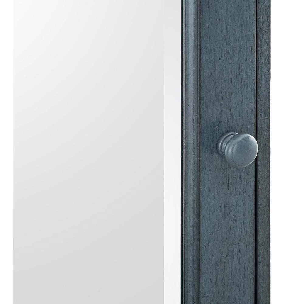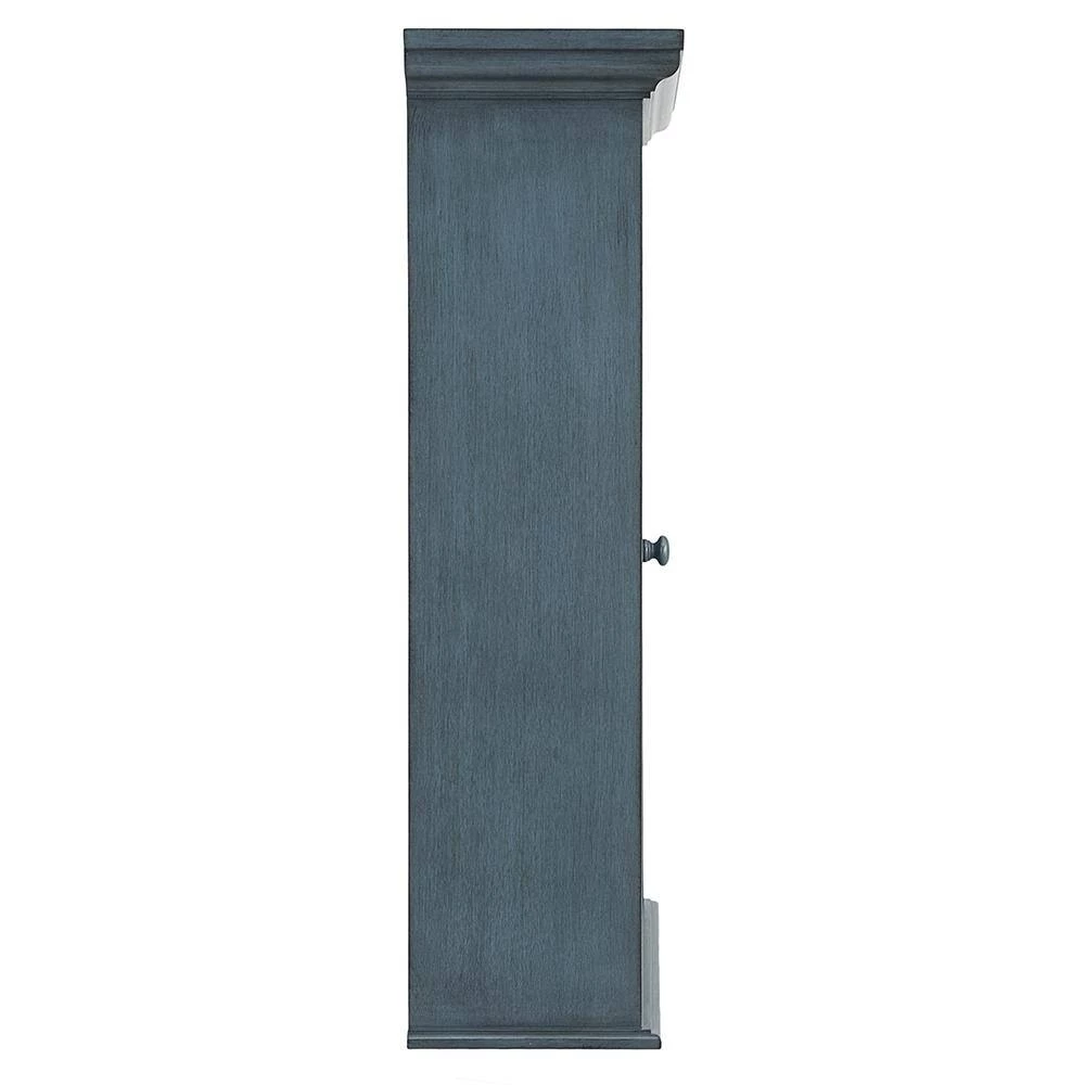 The Foremost Cottage 23-5/8 in. Surface-Mount Medicine Cabinet in Harbor Blue, with its beveled mirror and decorative wood frame, offers a classic look that can add elegance to your bathroom and enhance its overall appeal. Its harbor blue finish can accompany many different decorating schemes. 2-adjustable shelves provide ample space for a variety of container shapes and sizes, giving you versatile storage options. The cabinet can be easily installed with its Secure-Mount system.