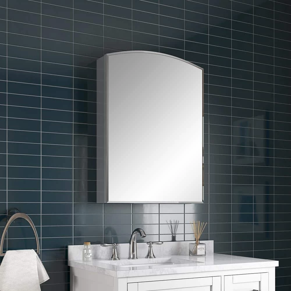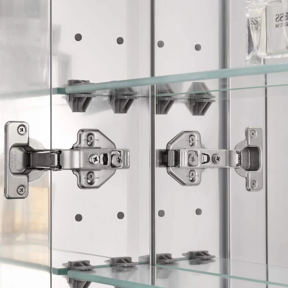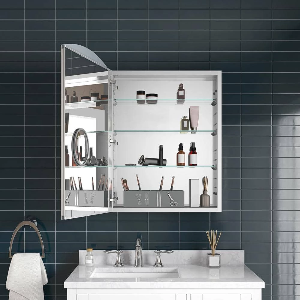 - Surface mount or recessed medicine cabinet with 4 adjustable shelves