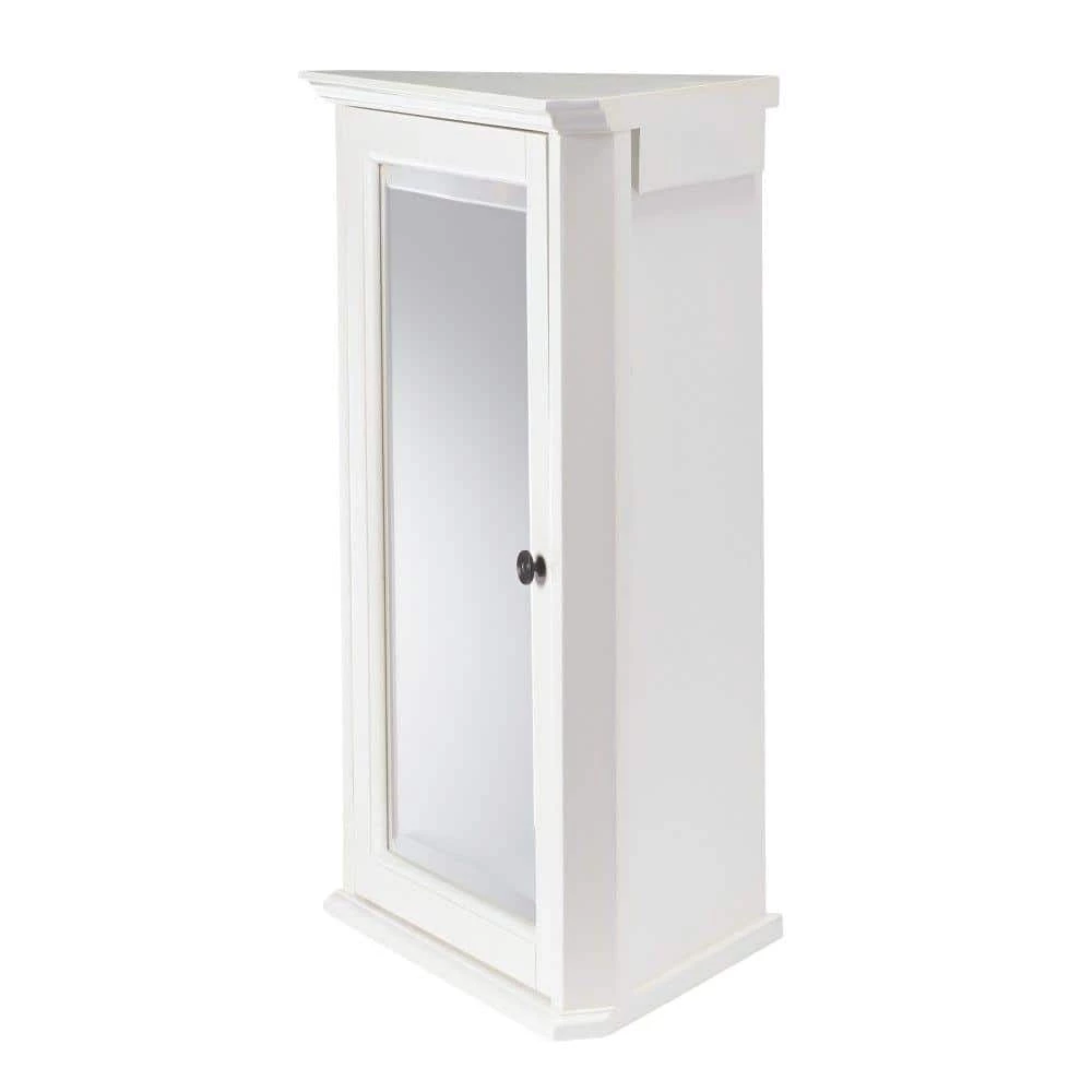 The Hamilton Corner Mirror will effortlessly fit into any compact powder room while the spacious two-shelf interior will store all toiletries. Update your bathroom today. Style complements most decor styles.