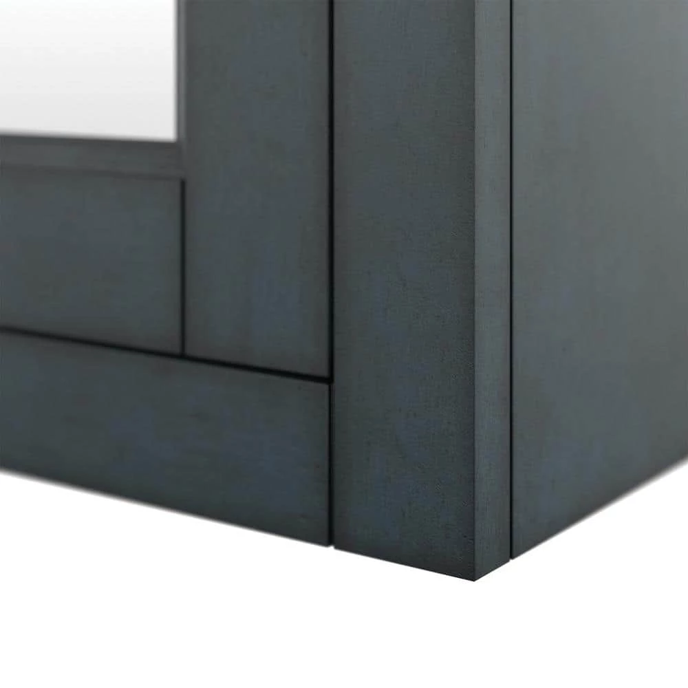 - Harbor blue finish with satin nickel hardware