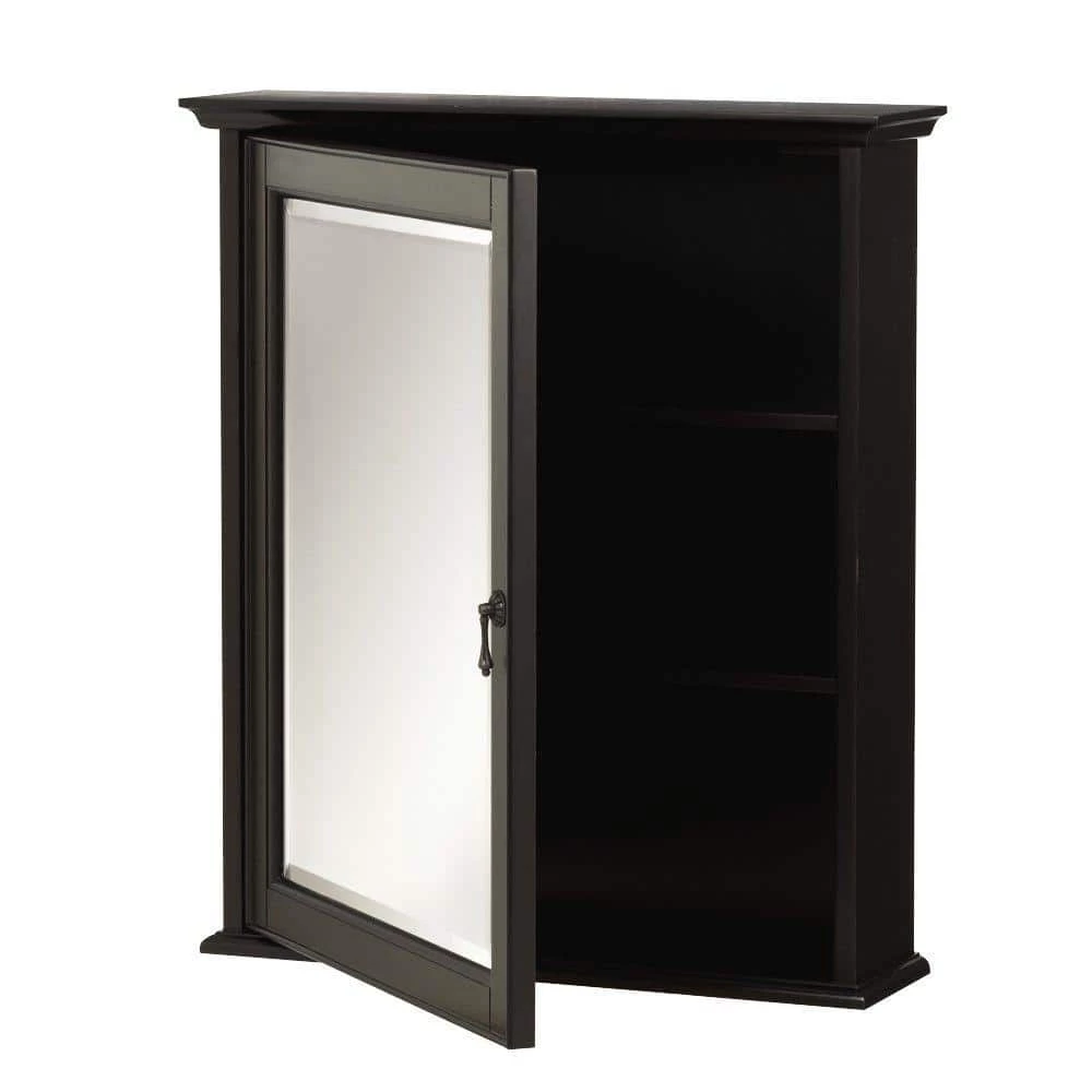 Our Newport Mirrored Cabinet is the ideal fusion of decor and storage. With its adjustable shelves neatly hidden behind a beautiful beveled mirror, you can keep all your makeup, medicine and toiletries just where you need them. The bronze-finished decorative hardware adds the perfect finishing touch to this classic wall cabinet. It’s sure to be a welcome addition to any bathroom.