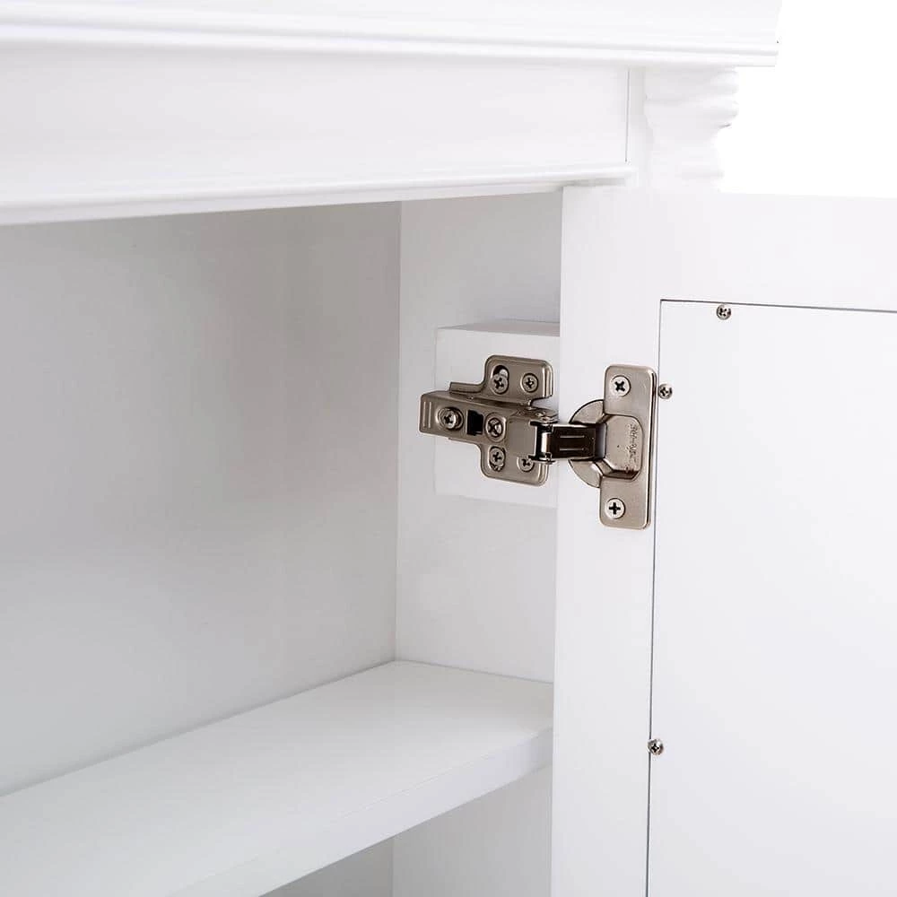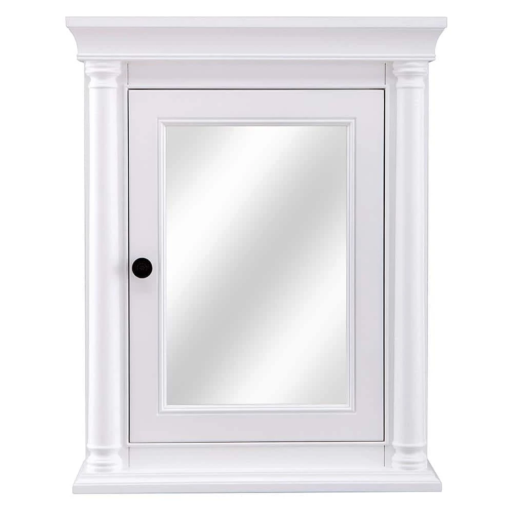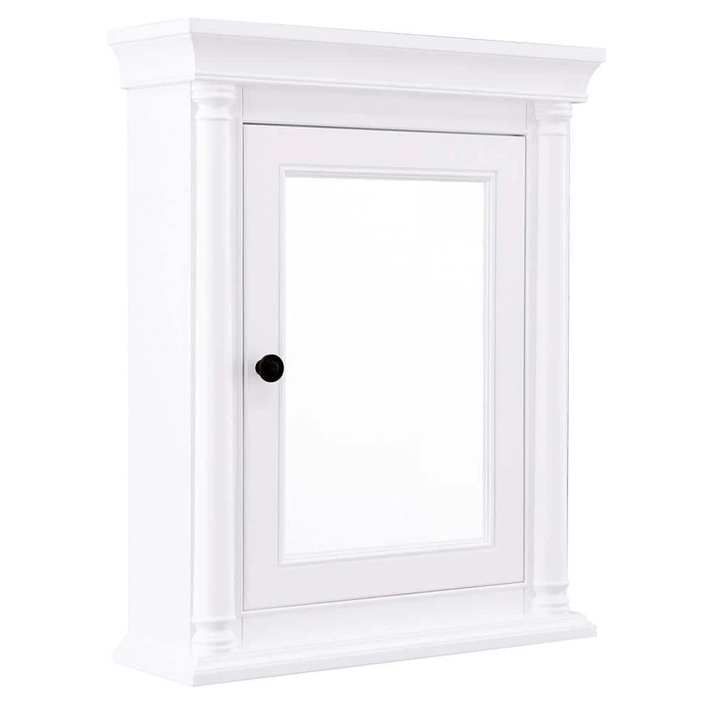 With a pristine White finish, the Strausse medicine cabinet makes an upscale, elegant impression and a perfect complement to the Strausse vanity. Featuring 2 interior adjustable shelves, you’ll keep bath necessities neatly tucked away behind a mirrored slow-closing door. The Dark Pewter round knob gives sharp contrast, while stately columns round out this furniture-style piece. Create a complete bathroom that leaves visitors envious with this cabinet and all its coordinating pieces in the Strausse collection.