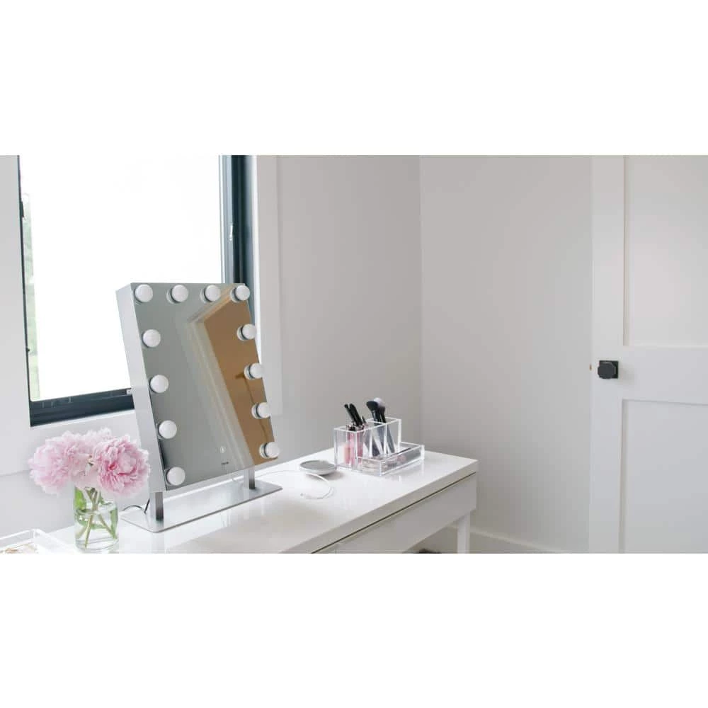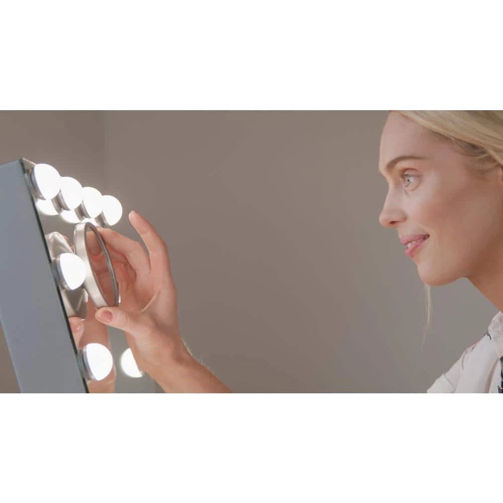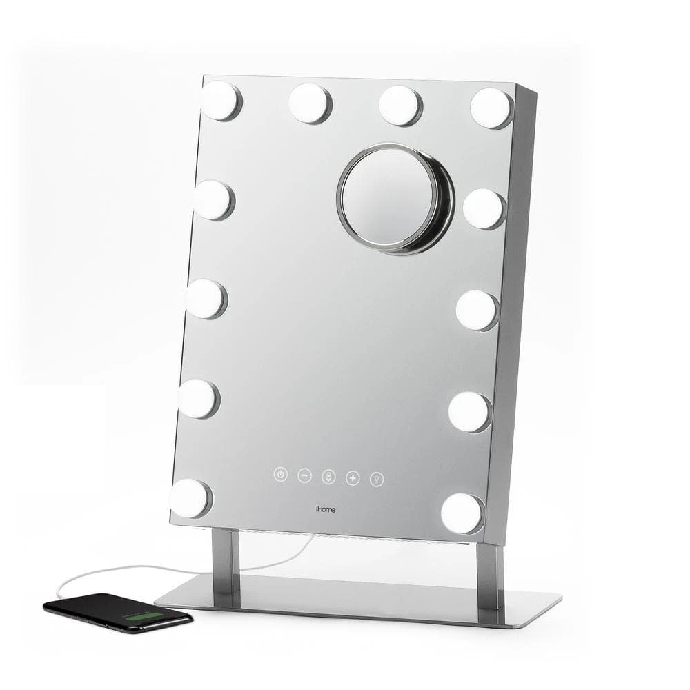 Introducing the iHome Beauty Hollywood Pro Bluetooth Vanity Mirror. Featuring 550 Lux full-spectrum lighting with 4 levels of brightness and 3 color light modes this mirror will have you looking great in any light. Connect through Bluetooth and enjoy room-filling sound through the built-in speaker or enjoy voice control with Siri or Google Assistant. Take calls hands-free through speakerphone and charge your phone through the rapid charging USB port. This mirror also comes with a removable 10X detail mirror.