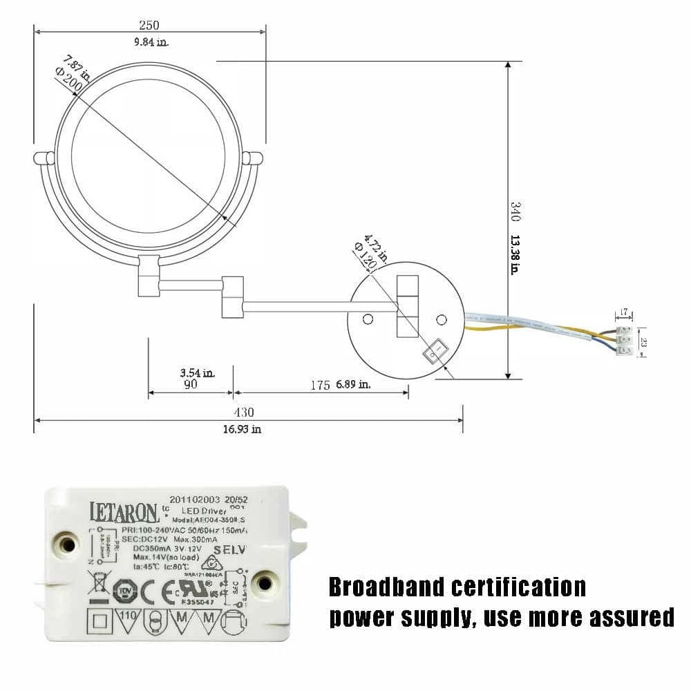- 360° view: Provide 360° rotation, easy to reach the best angle you need, the mirror also designed with an adjustable arm to smoothly extended and folded in tightly place on the dressing table, the stretch distance can reach 2 in. to 12 in. After installation, the shaft’s durability has tested to ensure its non-loose properties