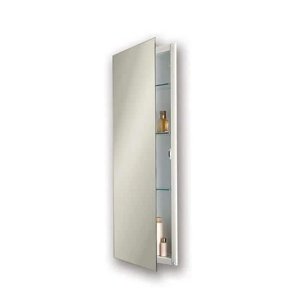 Get a storage solution for your bath essentials with the Jensen 664X Illusion 13 in. W Recessed Medicine Cabinet. The three adjustable shelves allow you to place containers of different sizes inside. The slim and sleek design is unnoticeable until you open it with its 3/8 in. projection from the wall. It is a recess mount and ensures that it will fit snugly into your wall giving you full functionality with a low profile that will fit flush with adjacent wall mirrors.
