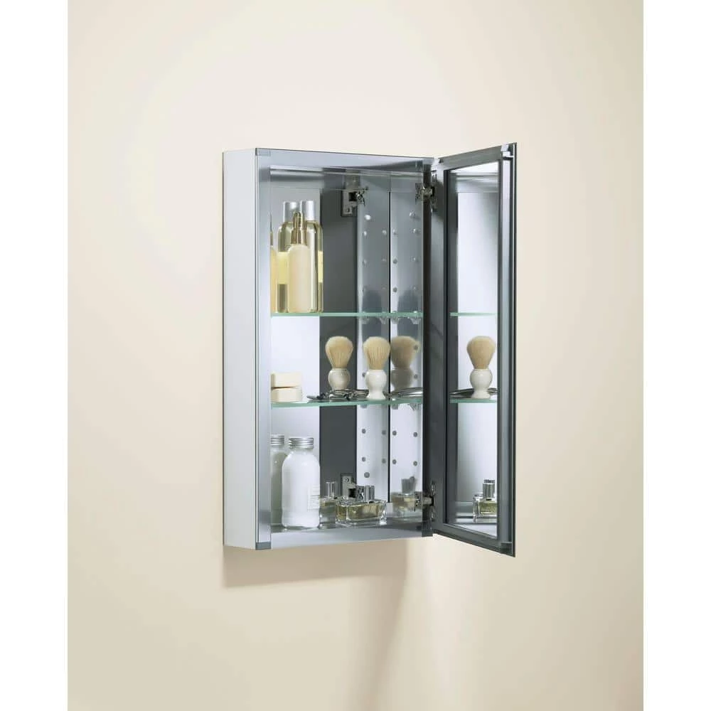 With mirrored surfaces inside and outside, this 15 in. frameless medicine cabinet helps you put your best face forward. The mirror on the front door features a beveled edge for enhanced style. Inside, adjustable glass shelves easily accommodate your toiletries.