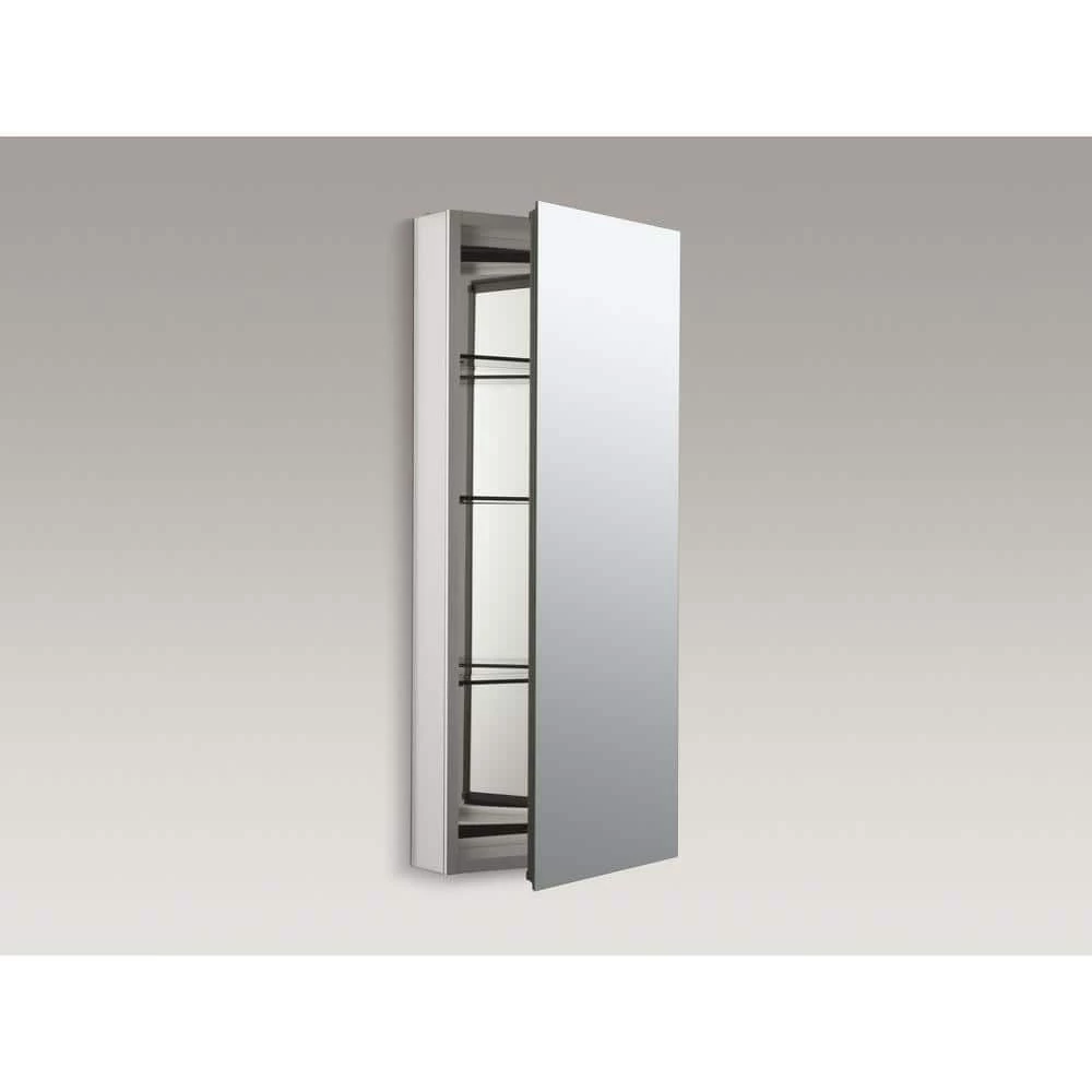 The Catalan medicine cabinet provides a stylish complement to any bathroom. Mirrors are positioned on the front and back of the door as well as the interior back wall of the cabinet. Four adjustable, black-tinted glass shelves hold your toiletries and bath items. Durable aluminum construction makes this cabinet rust- and rot-resistant.