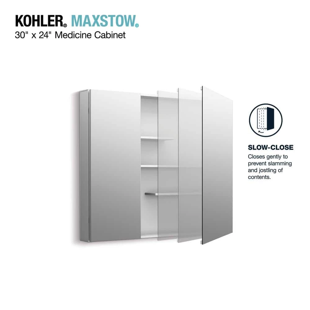 - Slow close medicine cabinet prevents slamming