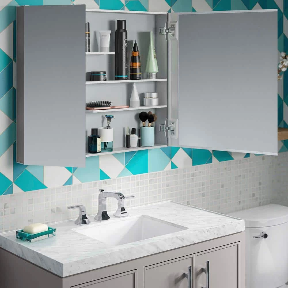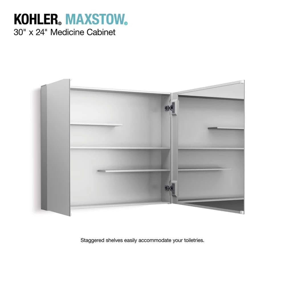 Maximize your bathroom storage with the Maxstow medicine cabinet. Staggered shelving holds tall and short items with no wasted space, fitting everything you need and keeping clutter off your countertop. The slim 3-1/2 in. D design provides the same internal storage space as traditional 5 in. D cabinets. Installation is fast and easy simply screw to the wall, right out of the box.