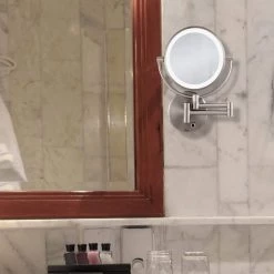 The Verdera medicine cabinet combines an elegant fit and finish with quick, easy installation. A built-in magnifying mirror on the inside of the door is vertically adjustable to accommodate users of varying heights. The door and interior are fully mirrored, and two adjustable glass shelves offer flexible storage.