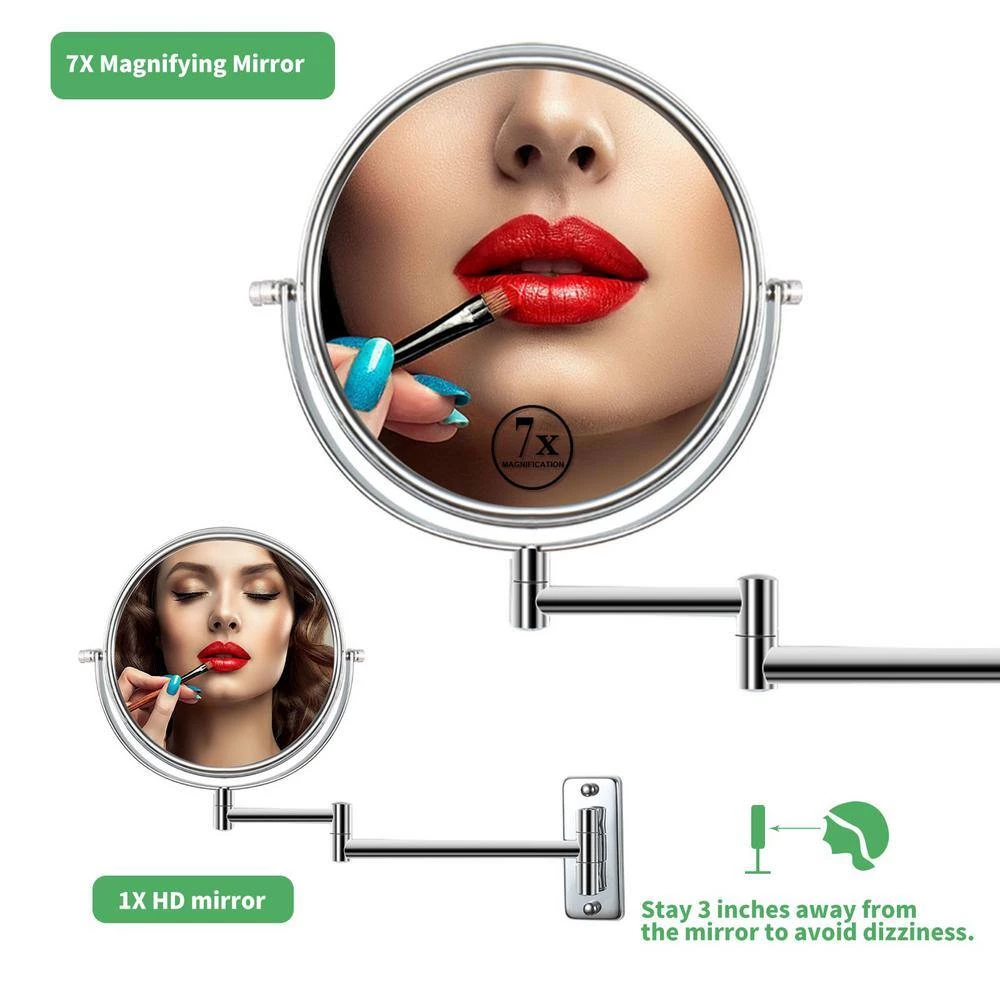 8 in. Wall Mount 2-Sided Magnifying Makeup Vanity Mirror is designed with most simple and elegant idea. Its 1x and 7x magnification swivels are more helpful for your makeup, routing, etc. Let’s get this for your bathroom.