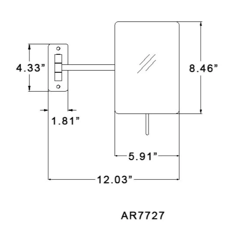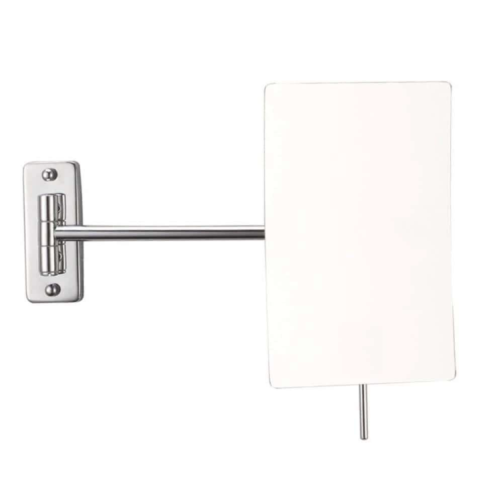 This wall mounted makeup mirror is single faced and comes with 3x magnification. With a chrome finish for its sleek rectangular design, this model comes with a single arm to move around to fit you needs. Made from brass, it fits perfectly into a contemporary bathroom.