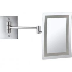 An Italian design and high-quality brass construction makes this wall mounted makeup mirror perfect for your contemporary styled bathroom. With hardwired installation, this model comes in two finishes; chrome or satin nickel. Its 3x magnification is enhanced by built-in LED lights. With a base made of stainless steel and an included on off switch incorporated design.
