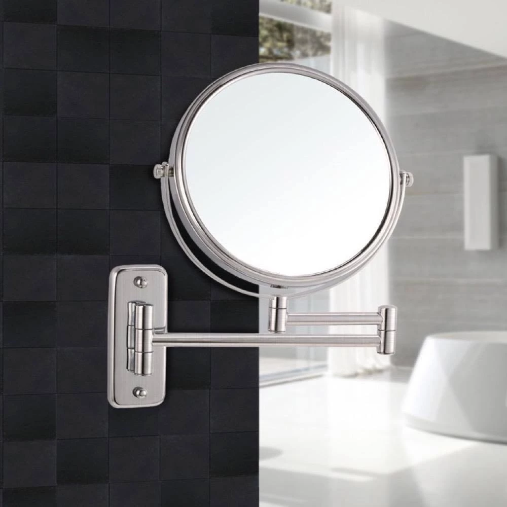 This extendable mall mounted mirror features a double arm and is made out of high-quality brass. Available in satin nickel finishes this double faced mirror features 3x magnification. With 8″ round mirror face, its trendy round shape and sleek design makes it a fine addition to your contemporary bathroom.