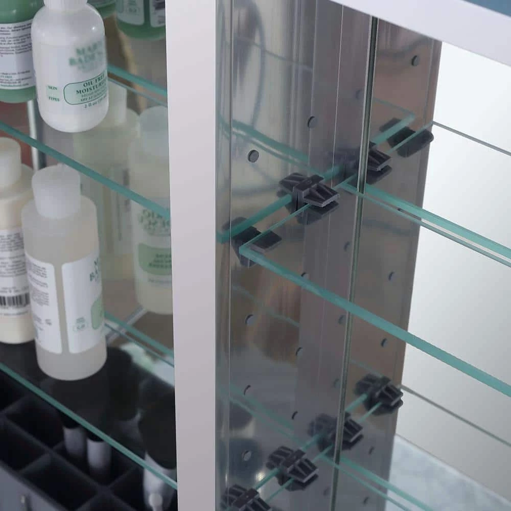 The traditional appearance of the Galway medicine cabinet is deceiving. This beautiful aluminum framed unit features a bountiful amount of storage behind its classic framing. All the shelving is adjustable, making it ideal for all your different products and supplies.