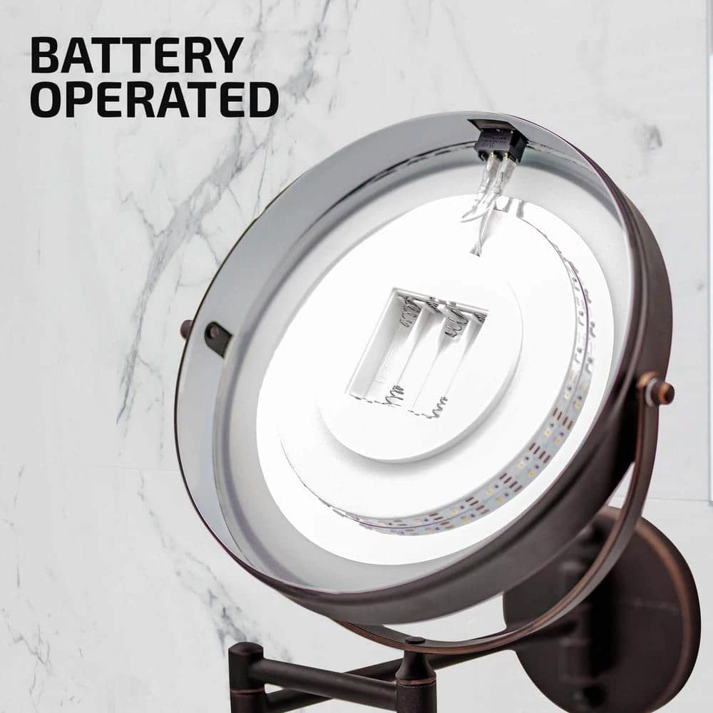 - 4 AA Battery Powered – Operate as cordless, using only batteries (not included). Twist & Pull to remove face of mirror to reveal battery compartment.