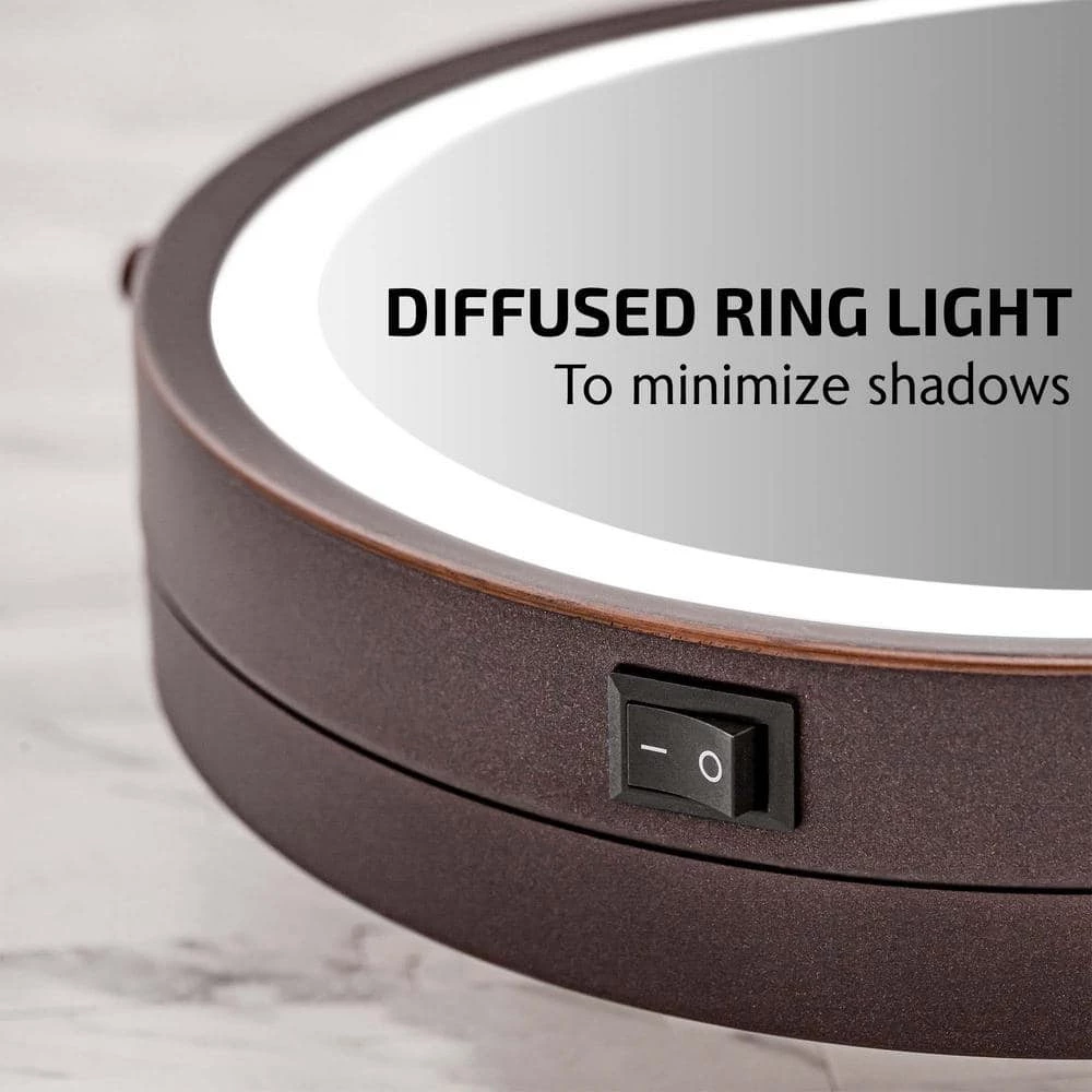 - 13” Extension from wall w/ Diffused White LED Ring Light – Long lasting and energy efficient light bulbs that simulates natural daylight lighting. Extendable arm for your convenience.