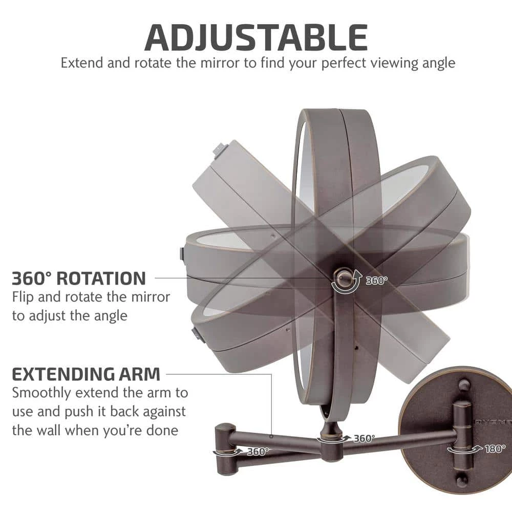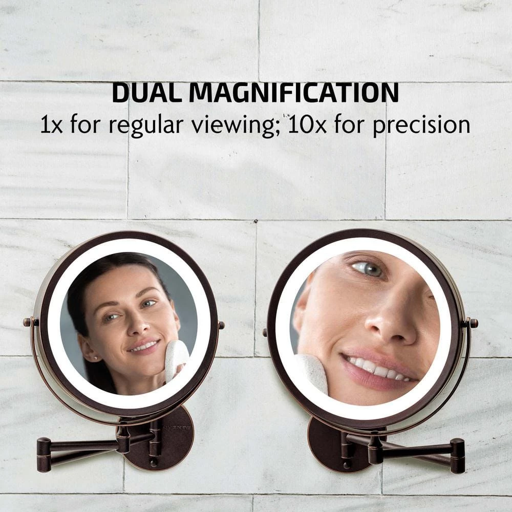 - 8.5” Viewing Space, Dual-Sided & 10x Magnifying -This Two Sided 360° swivel design luxury mirror features 1x & 10x magnifications. 1x (full face view) and 10x (to see every detail up close)