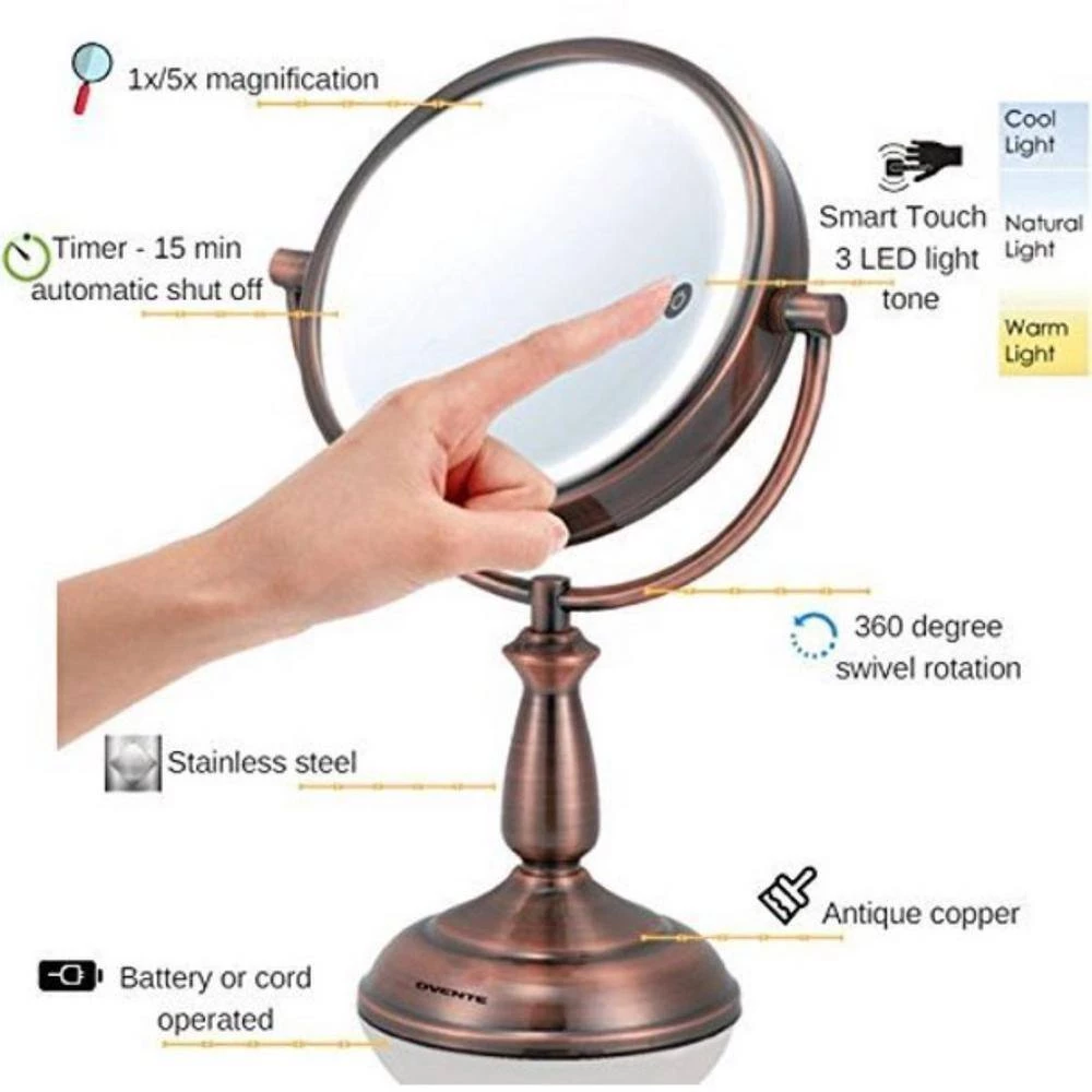 - Dual-Sided & 5x Magnifying -This Two Sided 360°swivel design luxury mirror features 1x & 5x magnifications. 1x (full face view) and 5x (to see every detail up close)