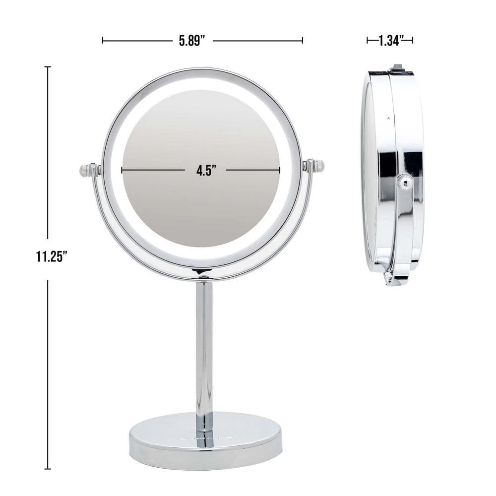 This cute adjustable makeup vanity with light mirror can be great for many decor, including vintage, Victorian, Hollywood, medical, or anything that involves beauty and self-care. This bathroom mirror with LED light is a classy addition for bathroom, bedroom, grooming, shaving and vanity needs. This countertop vanity makeup mirror gives a chic modern look for any master bath, hotel, dental, and shower needs. It is operated by 4 AAA batteries (not included). This magnified electric lit looking glass allows you to see up close so you can absolutely see your eyebrow and facial hair, much more clearly. Use it at home or as a portable option for any traveling, big or small. It is sure to bring an influx of positive high end energy to any room for everyone, including girls, boys and kids. Its ability to magnify, show off your accessories and continue a salon & spa experience at home makes this a consumer preferred product.