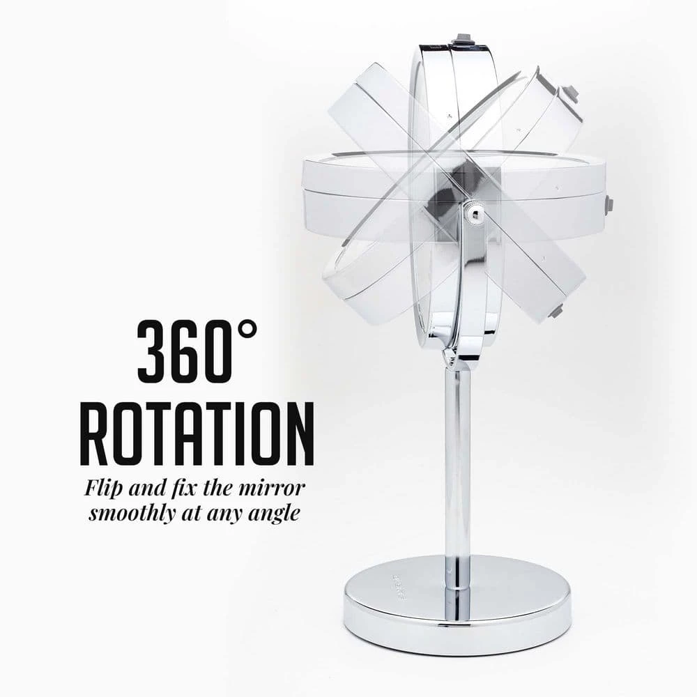 - Dual-sided & 7x Magnifying – This dual-sided 360° swivel design luxury mirror features 1x & 7x magnifications. The 1x provides a view of your face all at once and 7x for precision, because every detail counts.