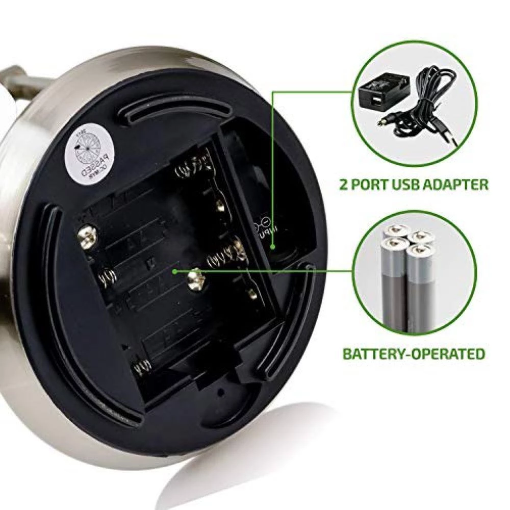 - 4 AA Battery & 2- PORT USB- Can be cordless, using only batteries (not included) or, operated by 2- PORT USB Adapter and cable (included) which allows you to charge a device while using the mirror.