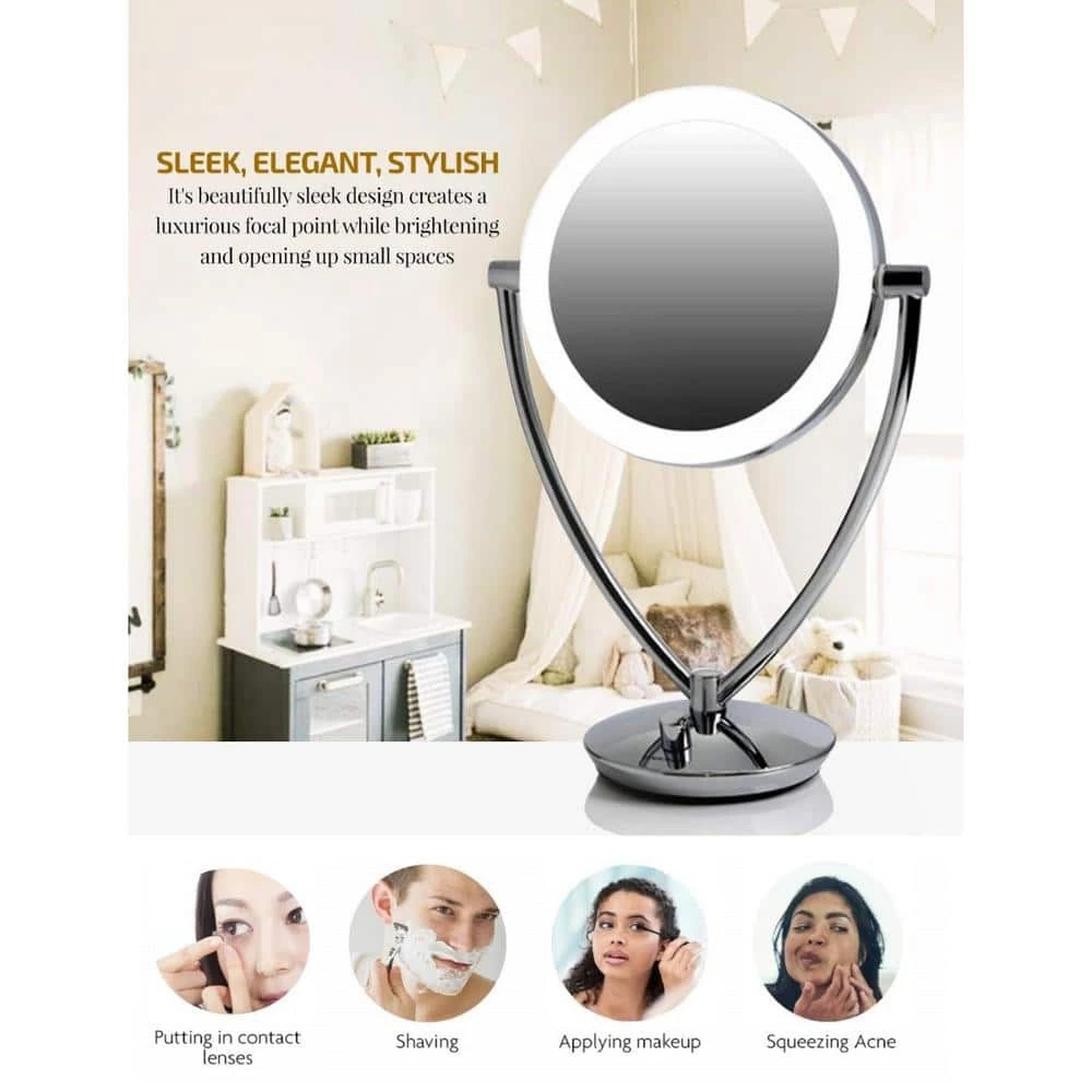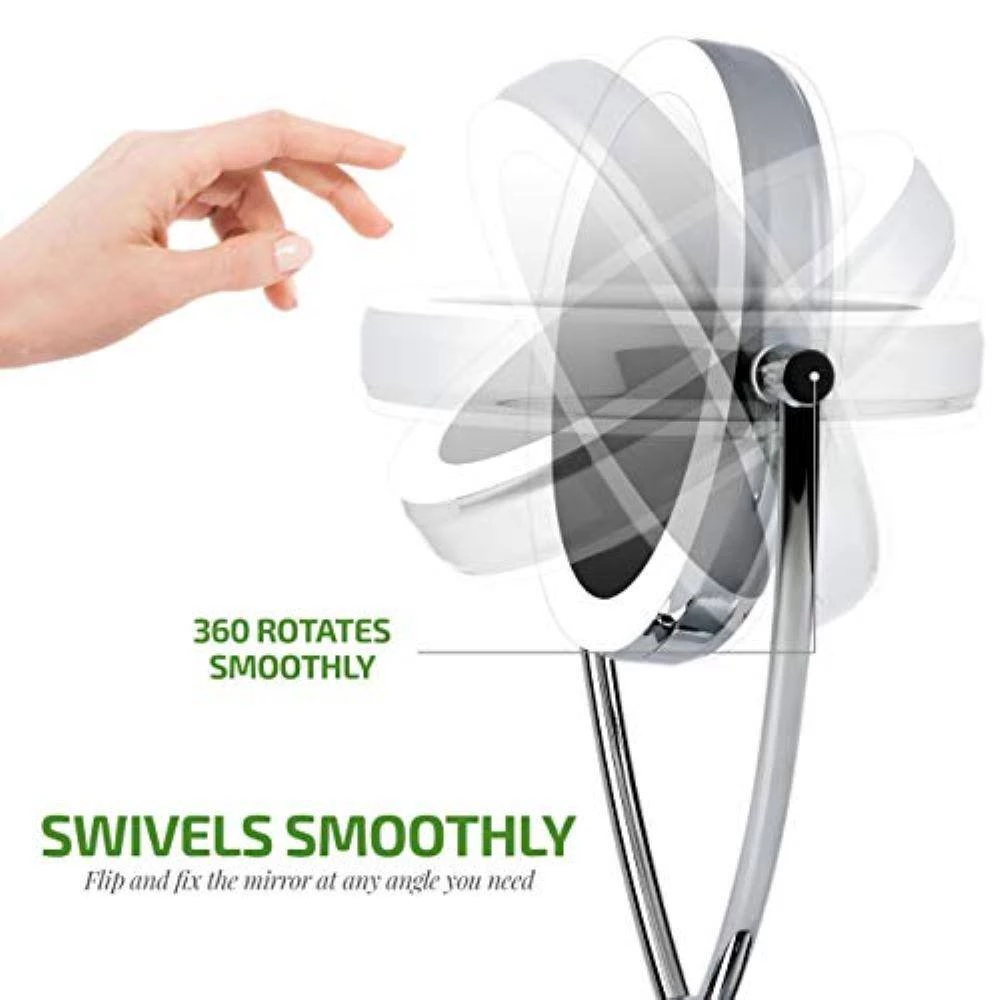 - Dual-Sided & 10x Magnifying -This Two Sided 360° swivel design luxury mirror features 1x & 10x magnifications. 1x (full face view) and 10x (to see every detail up close)