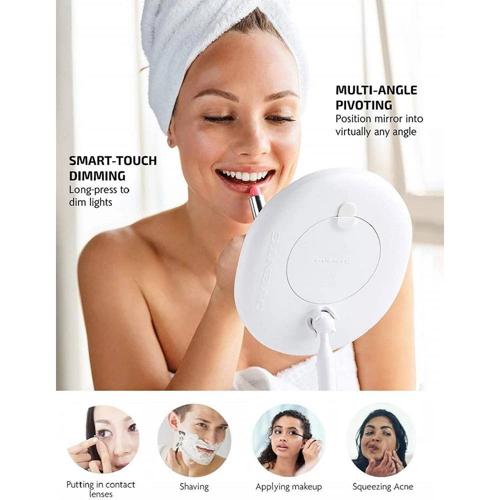 Introducing Ovente’s MOT22 Series Mirror! These mirrors can be completely disassembled to lay flat for traveling. The MOT model features a “catch” at the bottom, for your favorite key items. This handheld countertop mirror is built with a 8.5” face and a 1x10x zoom. The 10X is magnetized to the back for when you need the extra magnification! Its Dimmable Cool, White Tone Ring LED light allows you to get the closest to natural lighting. It’s great for personal style but also emits a professional top notch brightness that’s perfect for any desk, shower, desktop or counter. This cute adjustable countertop mirror can be great for many decor, including vintage, Hollywood, medical, or anything that involves beauty and cosmetics. It’s perfect for bathroom, bedroom, grooming, shaving and vanity needs. It is operated by a micro- USB cord for charging (included). This electric magnified lit looking glass allows you to see up close so you can absolutely see your eyebrow and facial hair, much more clearly. Use it at home or as a portable option for any traveling, big or small. Its ability to magnify, show off your accessories and universal salon feeling for girls, boys and kids, it is sure to bring an influx of positive energy to any room; great for Feng Shui.