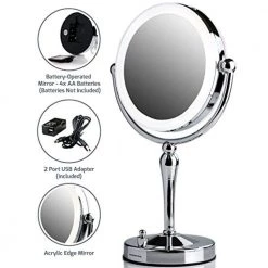 - 4 AA Battery & 2- PORT USB- Can be cordless, using only batteries (not included) or, operated by 2- PORT USB Adapter and cable (included) which allows you to charge a device while using the mirror.