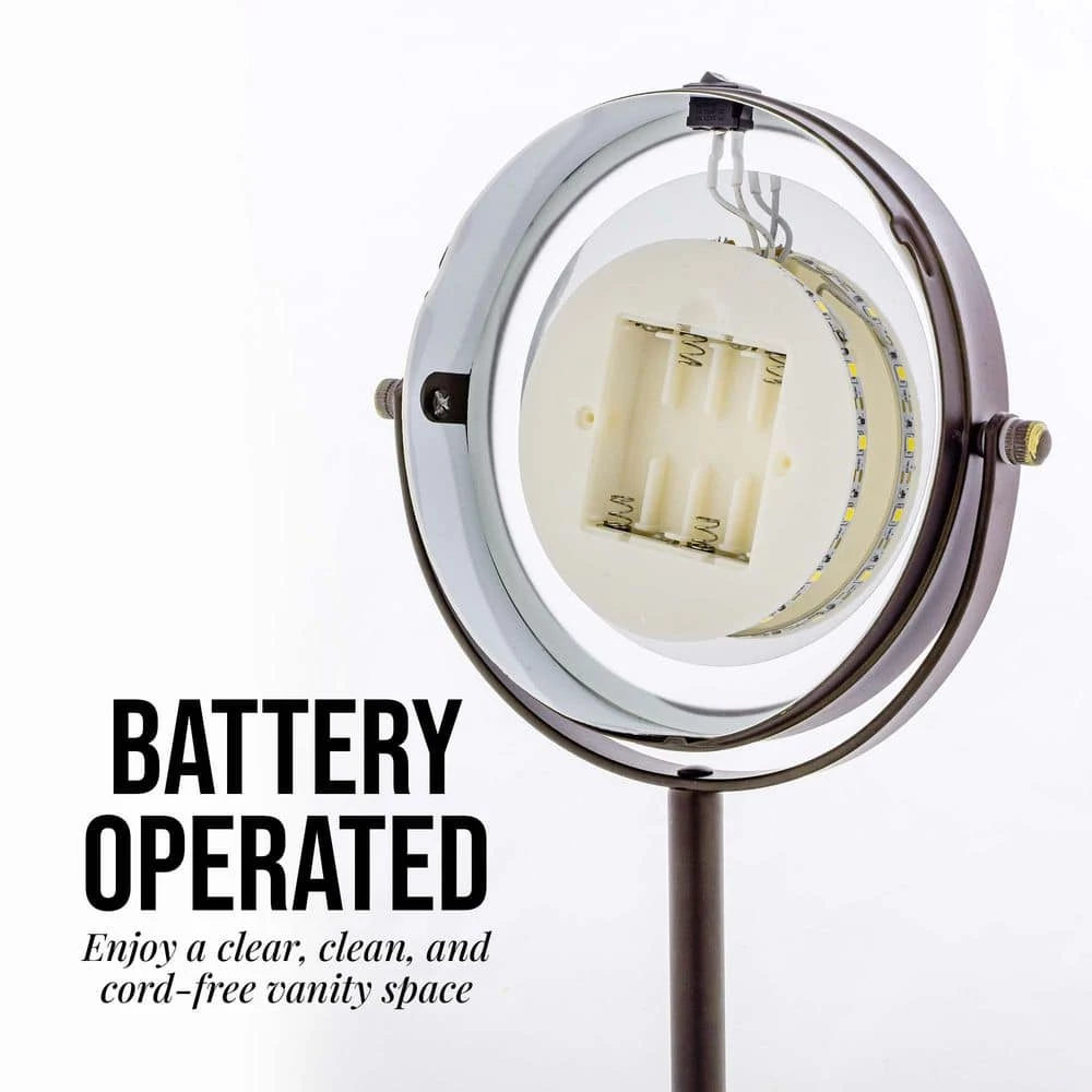- Battery Operated – This mirror is powered by 4 AAA batteries (not included).